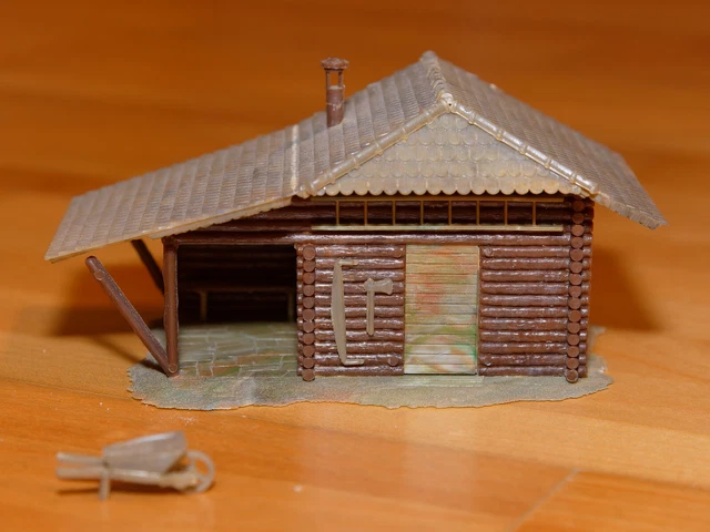 Eine bezaubernde Berghütte für deine Modelleisenbahn! Dieses detailreiche Modell im Maßstab H0 misst 13.9x3.7x22.4cm und gehört zur Epoche II. Mit Axt, Säge und Schubkarren als Zubehör. Einfacher Schwierigkeitsgrad - perfekt für Einsteiger. Sieht im Wald-Bereich deiner Anlage einfach traumhaft aus! Achtung: Nicht für Kinder unter 14 Jahren geeignet. Bring alpines Flair auf deine Modellbahn!