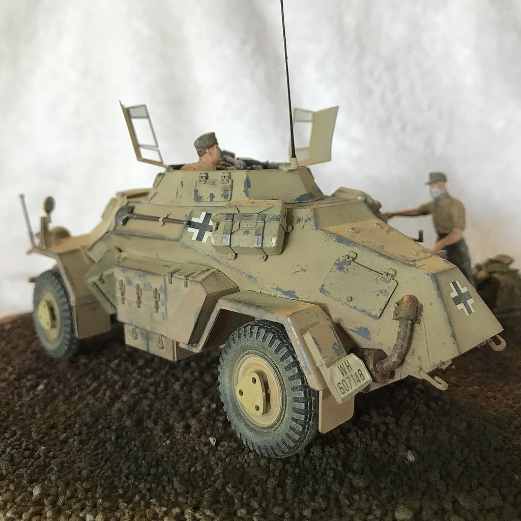 Für Modellbau-Fans und Geschichte-Enthusiasten! Dieser TAMIYA Bausatz des legendären Sd.Kfz.222 Panzers bringt WWII-Geschichte auf deinen Basteltisch. Im Maßstab 1:35 mit erstaunlichen Details.\\n\\nWas diesen Bausatz so besonders macht:\\n• Inklusive hochwertiger Fotoätzteile für noch mehr Details\\n• Realistischer Aluminium-Schützstock\\n• Authentische Markierungen nach neuesten historischen Forschungen\\n• Komplette Länge: 134mm - perfekt für Dioramen\\n\\nDer Sd.Kfz.222 war eines der bekanntesten deutschen Aufklärungsfahrzeuge des Zweiten Weltkriegs. Mit seiner 20mm Kanone und 7,92mm MG war er an allen Fronten im Einsatz.\\n\\nBesondere Features des Modells:\\n• Drehbarer Turm mit Granatenschutzgittern\\n• Vollständige Innenraumdetails\\n• Optionale 4-Rad-Lenkung\\n• Inklusive Figuren für lebendige Dioramen\\n\\nEgal ob Einsteiger oder Profi - mit TAMIYA Qualität gelingt jedes Modell! Perfekt für Sammlungen oder als Geschenk für Geschichtsinteressierte. Tauche ein in die Welt des historischen Modellbaus!