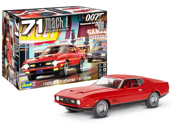 James Bond-Feeling für Modellbau-Fans! Dieser Revell Bausatz des legendären Ford Mustang Mach 1 aus 'Diamonds Are Forever' ist einfach genial. Im Maßstab 1:25 wird das Modell ca. 19 cm lang - mit allen Details des Film-Autos! Enthält 121 Teile in weiß, transparent und verchromt. Der große 429 Cobra Jet V-8 Motor ist super detailliert, genau wie der Innenraum mit separaten Türverkleidungen. Spezielle Film-Details inklusive: Mach 1-Ausrüstung, spezielle Frontstoßstange, wabenbesetzte Rücklichtplatte und die berühmten 'Baloney-Cut'-Auspuffspitzen. Für alle ab 12 Jahren geeignet - Farbe und Kleber nicht im Lieferumfang. Perfekt für Sammler und Bond-Fans! Bau dir dein Stück Filmgeschichte zusammen und stell den spektakulären Mustang in deine Vitrine. Ein echter Hingucker mit Kultfaktor!