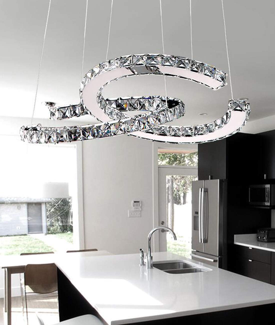 Wow, dieser Kristall-Kronleuchter von TaNeHaKi bringt echt Luxus in deine vier Wände! Mit seinem modernen Design und den funkelnden Kristallelementen wird er zum absoluten Hingucker in Wohnzimmer, Schlafzimmer oder Esszimmer. \n\nWas du wissen musst: Die Leuchte kommt ohne Birnen - du brauchst 6x E14 Glühbirnen (max. 7W). Keine Sorge, die Installation ist echt einfach, auch wenn's sich erstmal aufwändig anhört. Das komplette Montagezubehör liegt bei, und die englische Anleitung führt dich Schritt für Schritt durch den Aufbau. \n\nTechnische Details: • Maße: 48x26cm (Durchmesser x Höhe) • Material: Hochwertiger Edelstahl, Kristall & Aluminium • Spannung: 220-240V • Energieeffizienz: A++ • Beleuchtungsfläche: 10-15m² \n\nDer Clou: Die Kristall-Elemente streuen das Licht super gleichmäßig und sorgen für diese besondere, gemütliche Atmosphäre. Die Verarbeitung ist top - rostfrei und langlebig dank der speziellen Beschichtung. \n\nWichtig: Bitte nur in trockenen Räumen installieren (nicht im Bad!). Am besten machen das zwei Personen, und denk dran, vorher den Strom abzustellen. So hast du lange Freude an diesem absoluten Eyecatcher!