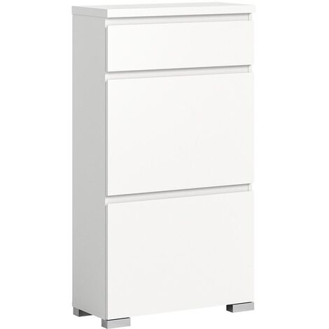 Wow, dieser weiße Schuhschrank ist einfach der Hammer für deinen Flur! Mit seinen eleganten Doppeltüren und den goldenen Halbkreisgriffen sieht er nicht nur super stylisch aus, sondern ist auch mega praktisch. Aus robustem MDF gefertigt, hält er ordentlich was aus - jede Ebene schafft 20 kg, die Oberseite sogar 30 kg. Perfekt für all deine Schuhe, Taschen und Kleinkram!