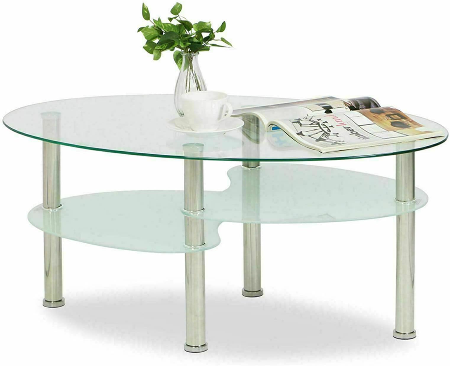 Stella Trading ALBERTO Couchtisch - Moderner Glastisch Mit Ablage Schwarz