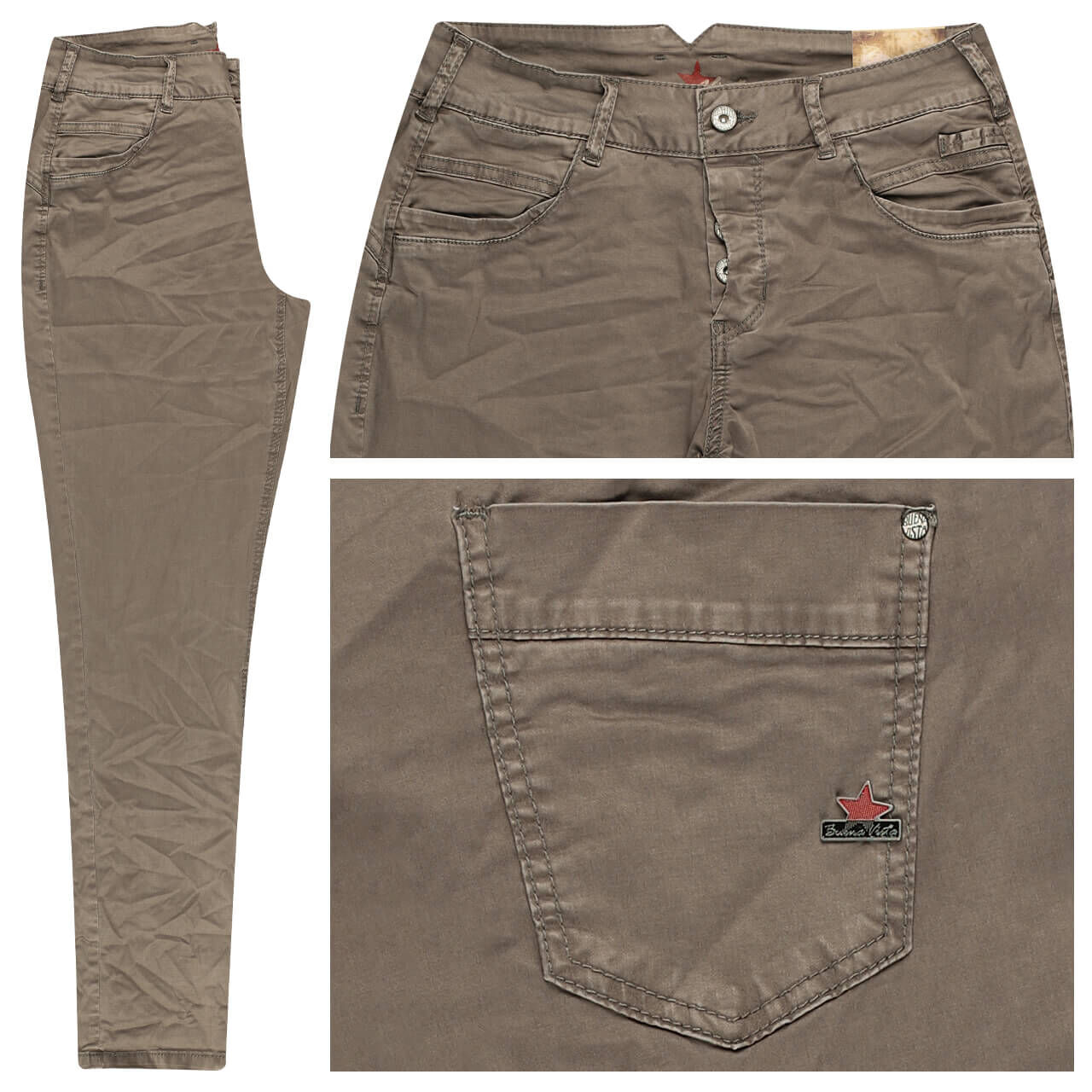 Diese Buena Vista Carrot Jeans ist total im Trend! Der Karotten-Schnitt ist oben locker und wird zur Wade hin schmaler - super schmeichelhaft für jede Figur. Mit umgeschlagenen Beinabschlüssen für den lässigen Look. Die dezente Waschung macht sie vielseitig kombinierbar. Das Logo-Patch hinten am Bund gibt den perfekten Branding-Touch. Aus weichem Denim mit Stretch-Anteil für maximalen Komfort. Perfekt für Office, Freizeit oder Date-Night. Einfach mit Sneakern, Stiefeletten oder Sandalen kombinieren. Die Passform ist einfach traumhaft - nicht zu eng, nicht zu weit. Absolute Empfehlung für alle, die mal was anderes als Skinny Jeans probieren wollen! Waschbar bei 30° - Farbe und Form bleiben erhalten. Dein neuer Liebling im Schrank! Details: Schnitt: Carrot/Fit • Besonderheit: Umschlagbare Säume • Waschung: Dezent • Branding: Logo-Patch hinten • Material: Baumwoll-Mix mit Stretch