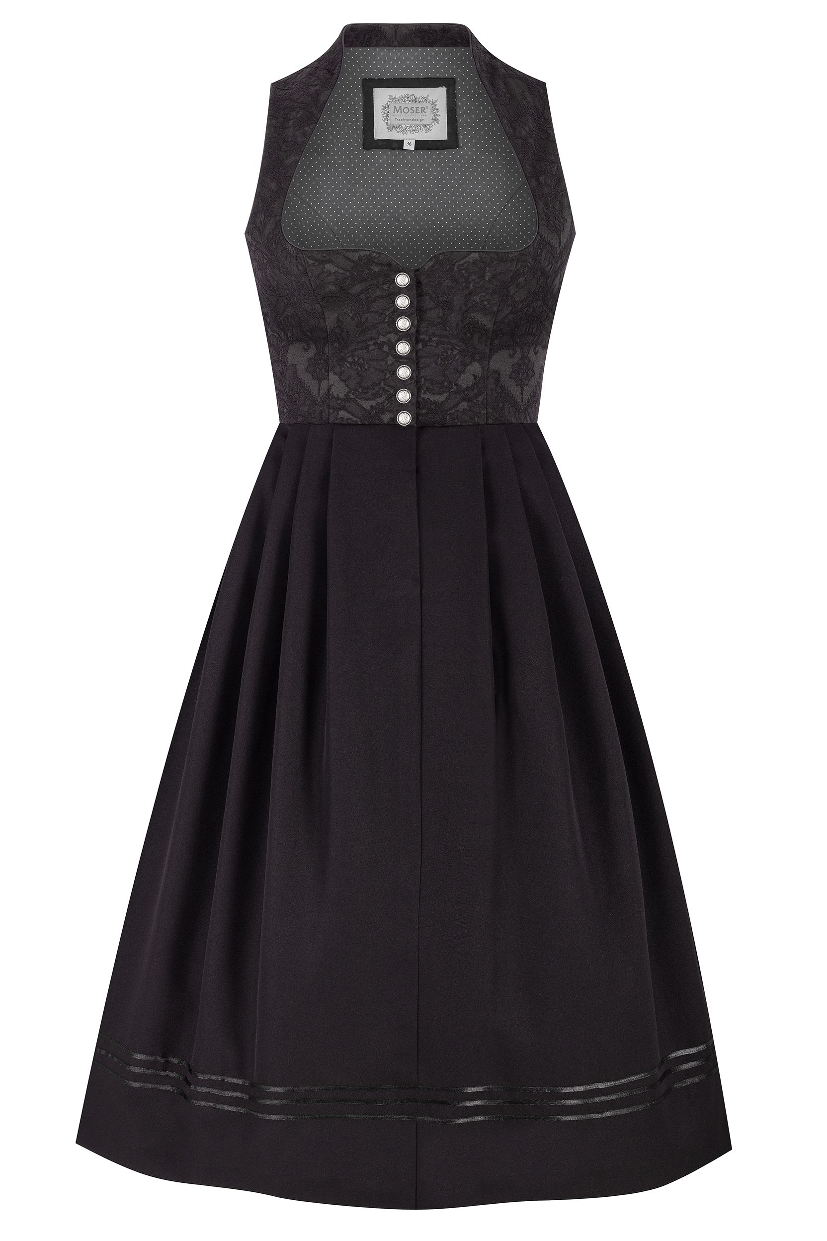 Dirndl Damen Midi Schwarz - Modernes Trachtenkleid Mit Stretch Für Oktoberfest