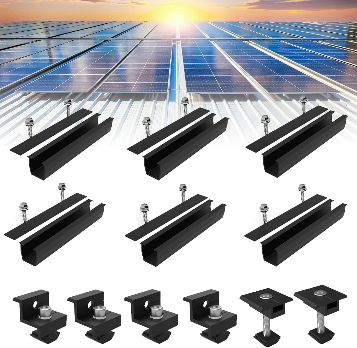 Alles dabei für deine Solaranlage! Dieses komplette Montageset für 2 Solarmodule enthält 6x 120cm Schienen, 4x Endklemmen und 2x Zwischenklemmen plus alle benötigten Edelstahlschrauben. Aus hochwertigem Aluminium das korrosionsbeständig und extrem langlebig ist. Die verstellbaren Klemmen passen für Module mit 30-35mm Dicke. Einfach zu installieren - alles was du brauchst ist im Lieferumfang enthalten. Ideal für Flachdächer, Trapezdächer und Blechdächer. Die Edelstahlschrauben (304) halten auch extremen Wetterbedingungen stand. Macht die Montage deiner Solaranlage zum Kinderspiel und sorgt für sicheren Halt über Jahre hinweg. Perfekt für Heimwerker und Profis!