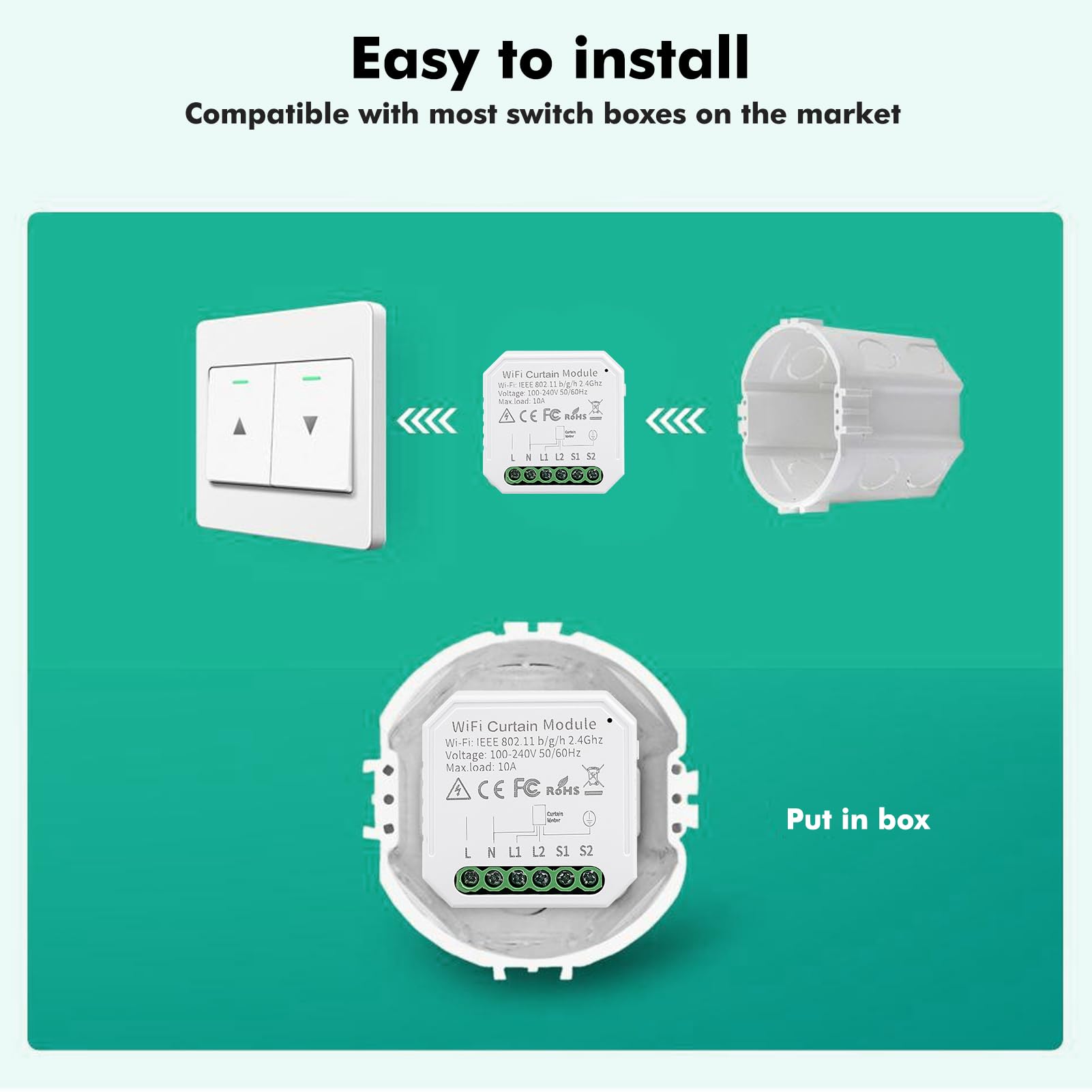 Mach deine Rollladen smart! Dieser WLAN-Schalter verwandelt normale Rollladen in smarte Geräte. Per App steuern, mit Alexa oder Google Assistant sprechen - 'Alexa, Rollladen hoch!' Zeitpläne einrichten, dass sie morgens automatisch hochgehen. Ohne Hub, einfach per 2,4 GHz WLAN. Für die meisten Rollladenmotoren mit 4 Drähten (Motor nicht dabei). Perfekt für Zuhause - ob Jalousien, Markisen oder Vorhänge. Endlich nicht mehr aufstehen müssen! Einfach installieren und dein Zuhause wird smart. So modern und bequem war Rollladensteuerung noch nie!