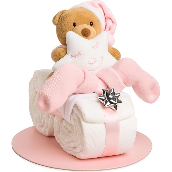Das süßeste Geschenk zur Geburt! Diese bezaubernde Windeltorte in Rosa-Weiß begeistert jede junge Familie. Handgefertigt aus 30 Pampers Windeln Größe 3 und vielen praktischen Baby-Artikeln: Kuscheltier, Spucktuch, Schnuller, Mützchen und Pflegeprodukten. Ca. 28 cm hoch und 27 cm breit - ein echter Hingucker! In transparenter Geschenkfolie mit Schleife verpackt, optional personalisierbar mit Namen. Alles ist neue Qualitätsware und kann sofort verwendet werden. Perfekt für Babyshower, Taufe oder einfach als Willkommensgeschenk. Praktisch, originell und wunderschön - eine Freude für Mama und Baby!