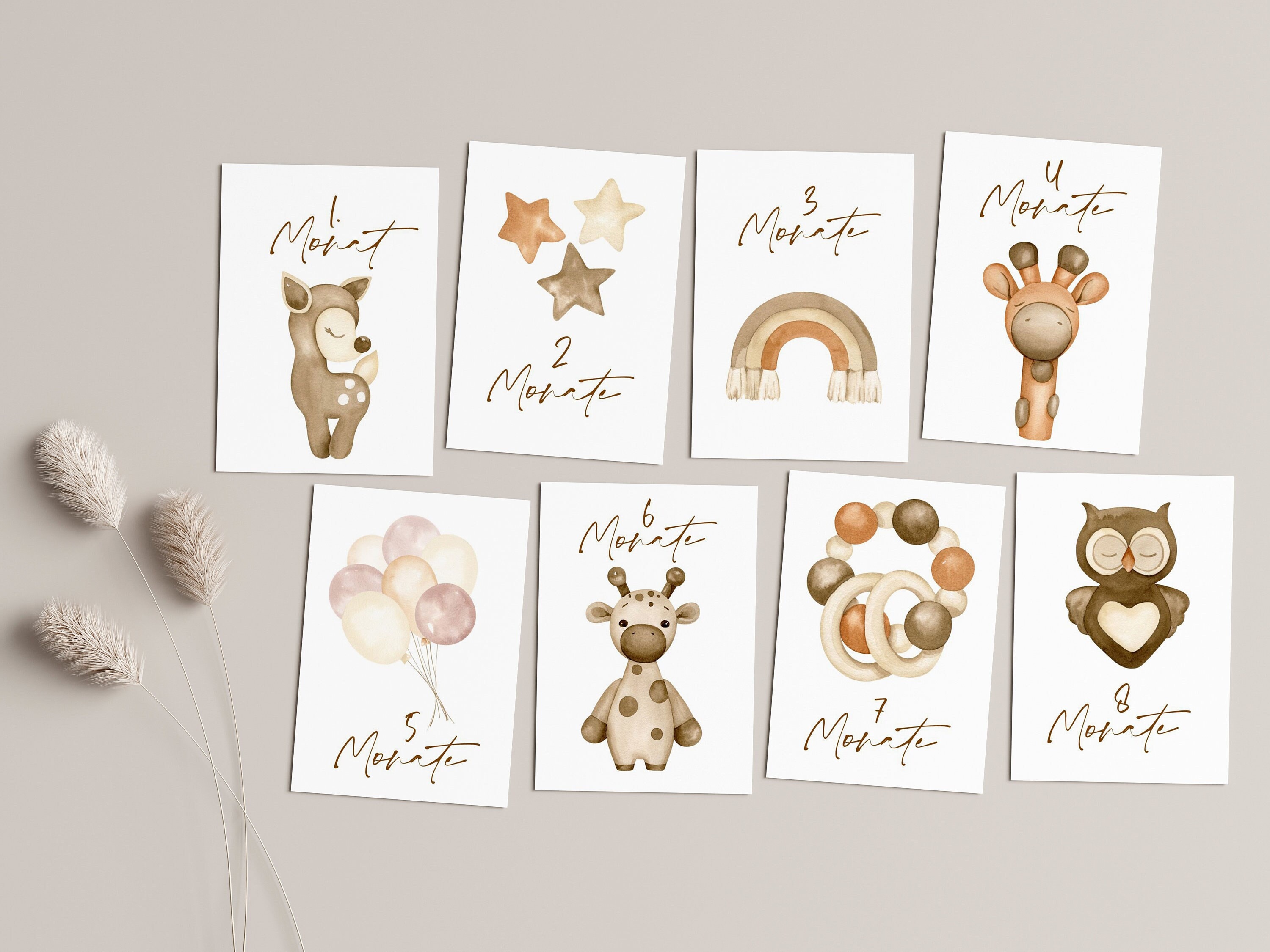 Oh wie süß! Diese Meilensteinkarten sind perfekt, um jedes wichtige Etappenziel deines Babys festzuhalten. Von Monat 0 bis 12 dokumentierst du so die ganze Entwicklung deines Kleinen. Die Karten aus robustem MDF-Holz haben niedliche Blumenmotive und sind absolut sicher für Babyhände. Super als Requisite für die monatlichen Fotos - einfach die passende Zahl zum Baby halten und knipsen! Die Erinnerungen bleiben so für immer festgehalten. Auch wunderschön als Deko im Kinderzimmer oder als Geschenk zur Babyparty. Die bunten Designs passen für Jungen und Mädchen gleichermaßen. Jede Karte ist ein kleines Kunstwerk, das die besonderen Momente des Großwerdens einfängt. Ob für's Fotoalbum, die Wand oder als besonderes Andenken - diese Karten machen jede Baby-Phase unvergesslich. Ein Must-have für alle frischen Eltern und die, die es noch werden!