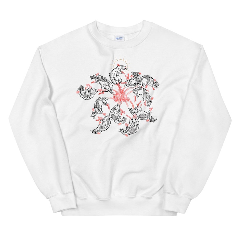 Dieses Sweatshirt ist einfach kultig! Drei verfluchte Ratten heulen den Mond an - ein absolut geniales Meme-Design das garantiert für Gespräche sorgt. Aus 8.5 oz Material für optimalen Tragekomfort und Wärme.\n\nDas Design zeigt die drei mystischen Kreaturen wie sie die Essenz und Kraft des Mondes kanalisieren. Perfekt für alle die skurrilen Humor lieben und sich von Mainstream-Mode abheben wollen.\n\nKlassischer Schnitt - passt sowohl Männern als auch Frauen. Einfach kombinierbar mit Jeans, Jogginghosen oder sogar Lederhosen für den ultimativen Contrast-Look.\n\nSuper für:\n• Meme-Liebhaber und Internet-Kultur-Fans\n• Alternative Mode\n• Geschenk für schrullige Freunde\n• Cosplay und Conventions\n• Alle die was Besonderes suchen\n\nDas Sweatshirt ist nicht nur lustig, sondern auch superbequem. Perfekt für kühlere Tage, gemütliche Abende oder als Statement-Piece in deinem Kleiderschrank.\n\nWarnung: Die verfluchten Ratten könnten dich finden... aber hey, wenigstens siehst du dabei stylisch aus! Ein Must-Have für jeden der skurrilen Humor zu schätzen weiß.