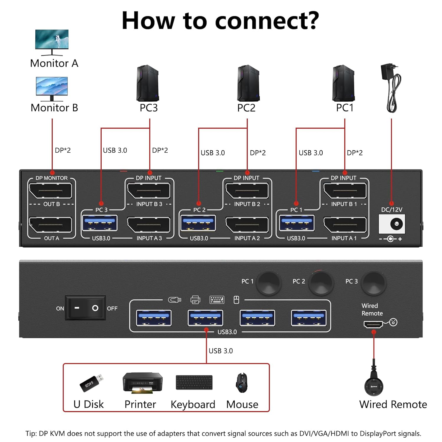 Boah, wenn du zwei Computer hast aber nur einen Arbeitsplatz, dann ist dieser KVM-Switch genau das Richtige für dich! Der Teil lässt dich zwei PCs mit nur einer Tastatur, Maus und zwei Monitoren steuern - mega praktisch! Unterstützt bis zu 4K@144Hz und sogar 8K@60Hz - also richtig high-end! Mit 4 USB 3.0 Ports, die bis zu 5 Gbit/s schaffen - ideal für Festplatten, Drucker und mehr! Wichtig: Das Ding braucht DisplayPort - HDMI geht nicht! Also check vorher, ob deine Rechner zwei DP-Ausgänge haben! Umschalten ist super einfach: Entweder mit der Select-Taste oder mit nem separaten Mini-Controller! Zwei Modi möglich: Duplikation (beide Monitore zeigen dasselbe) oder Erweiterung (größerer Arbeitsbereich)! Plug-and-play - keine Treiber nötig! Mit nem 12V Netzteil für stabile Leistung! Ob für Homeoffice, Gaming oder professionelle Arbeit - dieser KVM spart dir ne Menge Platz und Geld! Einfach anschließen und zwischen den Rechnern hin und her switchen - so einfach kann Technik sein!