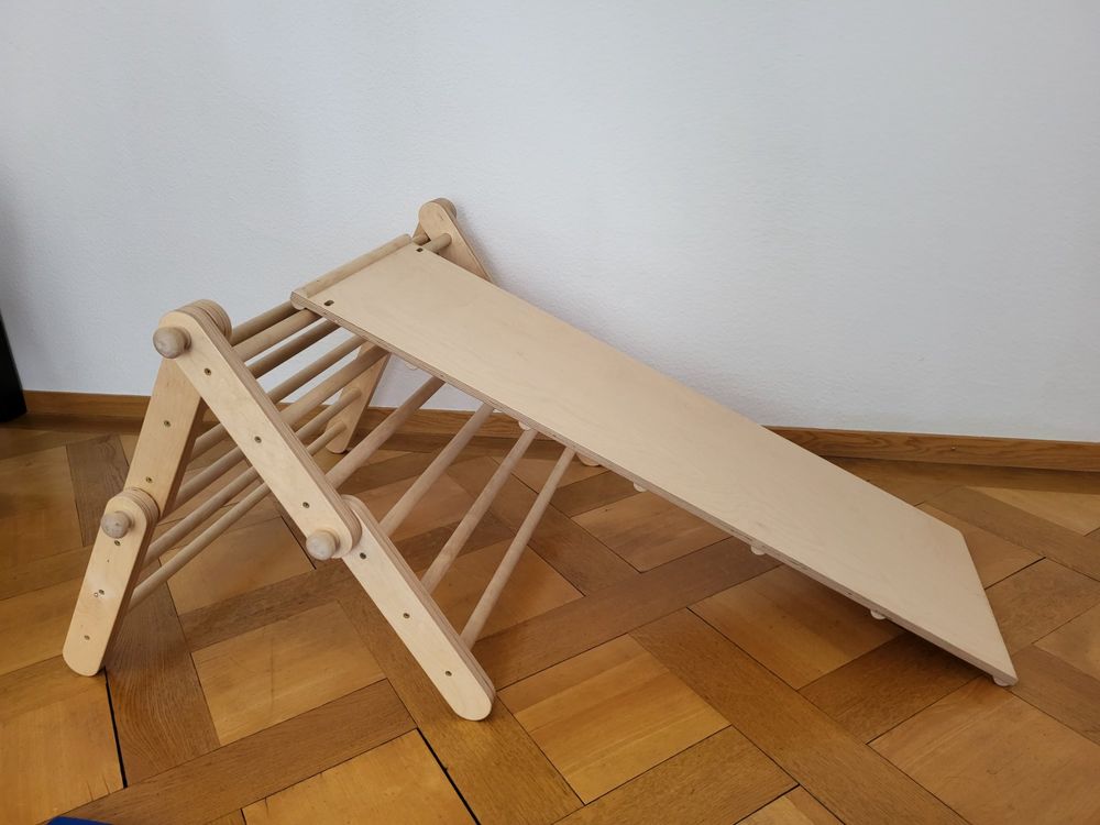 Boah, dieses Kletterdreieck ist der absolute Hit für kleine Entdecker! Das 7-in-1 Set besteht aus stabilem Kiefernholz und ist super vielseitig - ob als Kletterpyramide, Rutschbahn oder Schaukelboot. Die Rutsche hat praktische Handläufe und Schutzstreifen, damit dein Kind sicher unterwegs ist. Mit 4 verstellbaren Leitern und 6 abnehmbaren Knöpfen kannst du das Dreieck immer wieder umbauen und neue Spielmöglichkeiten schaffen. Besonders cool: Der Kletterbogen wird mit weichen Kissen geliefert und lässt sich in ein gemütliches Schaukelboot verwandeln. Das Ganze ist platzsparend zusammenklappbar und passt auch in kleinere Wohnungen. Perfekt für Kinder ab 1 Jahr, um motorische Fähigkeiten zu trainieren und selbstbewusst zu werden. Die Oberfläche ist glatt geschliffen und umweltfreundlich lackiert - alles entspricht den europäischen Sicherheitsnormen. Einfach aufbauen mit der bebilderten Anleitung und schon kann der Kletterspaß beginnen! Das perfekte Geschenk für Geburtstage oder Weihnachten.