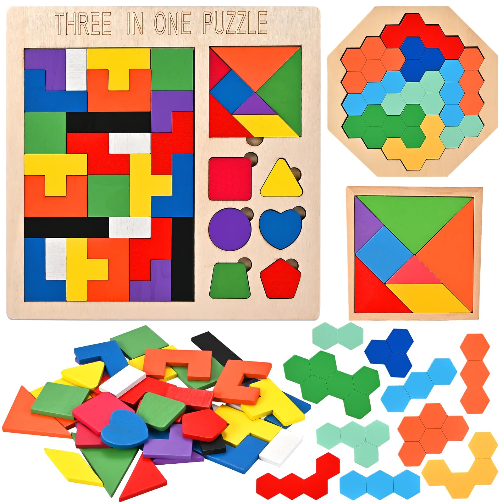 • 3D Holzpuzzle Tetris - Montessori Lernspiel Für Kinder & Erwachsene