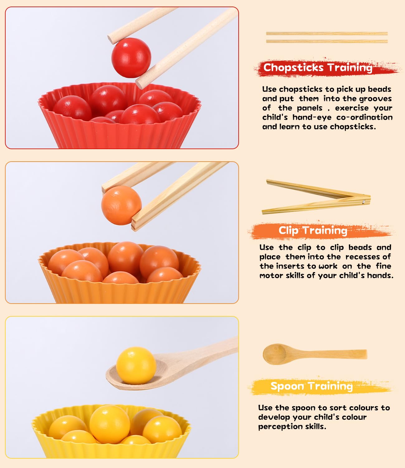 Montessori Mathe Spielzeug Set - Bunte Silikon Perlen Mit Essstäbchen & Löffeln Für Kinder
