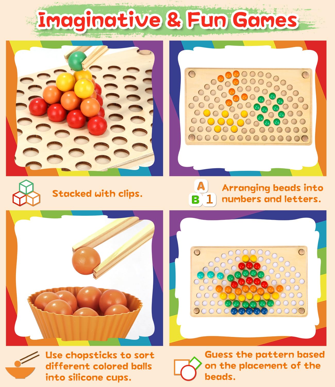 • Montessori Mathe Spielzeug Set - Bunte Silikon Perlen Mit Essstäbchen & Löffeln Für Kinder