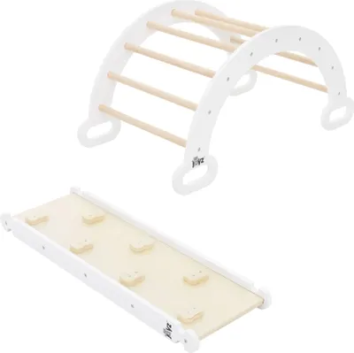 Doppelter Spielspaß für kleine Kletterer! Diese Joyz 2-in-1 Rampe ist beidseitig nutzbar - einmal mit 7 Griffen zum Klettern, einmal als glatte Rutsche. Aus hochwertigem Holz gefertigt, passt sie perfekt zu Kletterdreiecken und -bögen. Fördert Motorik, Gleichgewicht und Fantasie nach Montessori-Prinzipien. Extra feingeschliffen für maximale Sicherheit. Nur für Innenbereich und unter Aufsicht verwenden. Achtung: Nur die Rampe wird geliefert, nicht das komplette Klettergerüst! Deine Kinder werden begeistert sein - bestell jetzt und lass die Abenteuer beginnen!