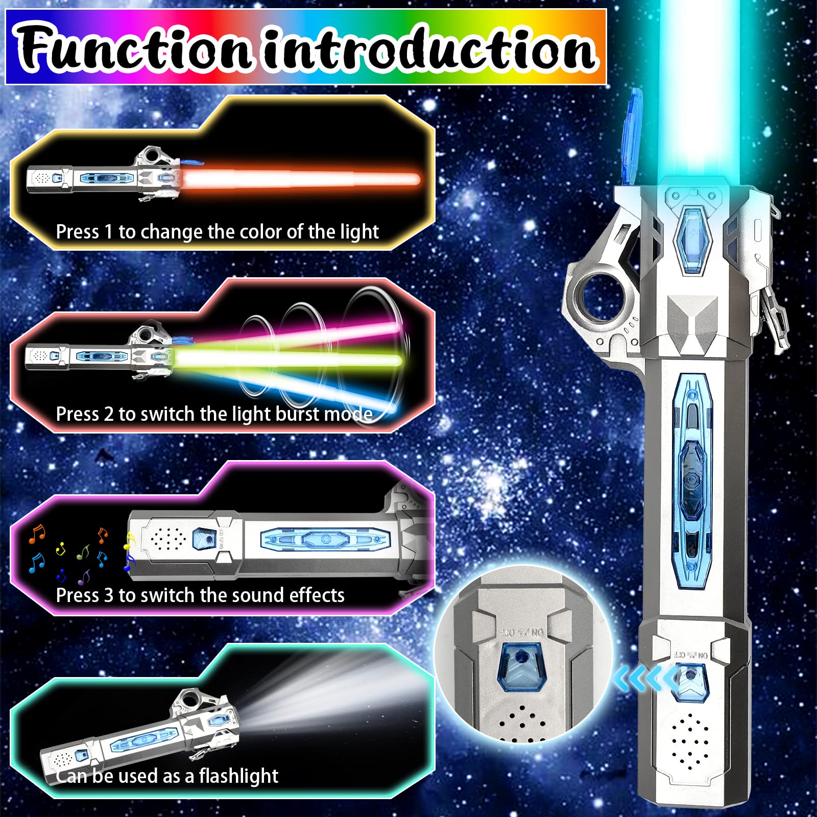 Möge die Macht mit dir sein! Dieses coole Lichtschwert von Moocuca bringt Star-Wars-Feeling ins Kinderzimmer. Mit 7 leuchtenden RGB-Farben und echten Soundeffekten fühlen sich die Kleinen wie echte Jedi. Einfach ausziehbar auf 82cm, aber sicher und kindgerecht. 6 verschiedene Modi stehen zur Auswahl - mit Sound, ohne Sound, verschiedene Farben. Batteriebetrieben (3x AAA, nicht enthalten), ab 3 Jahren geeignet. Perfekt für Cosplay, Halloween oder Geburtstagspartys. Achtung: Nicht auf Menschen zielen und nicht auf der Straße spielen!