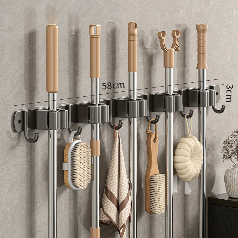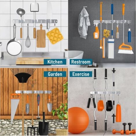 Schluss mit umherstehenden Besen und Mopps! Dieser robuste Halter aus 304er Edelstahl bringt Ordnung in deine Putzecke. Mit 3 Schlitzen für Besen/Stiele und 4 Haken für Bürsten oder andere Utensilien. 38cm lang, wasserfest und rostfrei - perfekt für Bad, Küche, Garage oder Garten. Einfache Montage: entweder mit mitgelieferten Schrauben oder Klebeband. Endlich alles griffbereit und aufgeräumt!