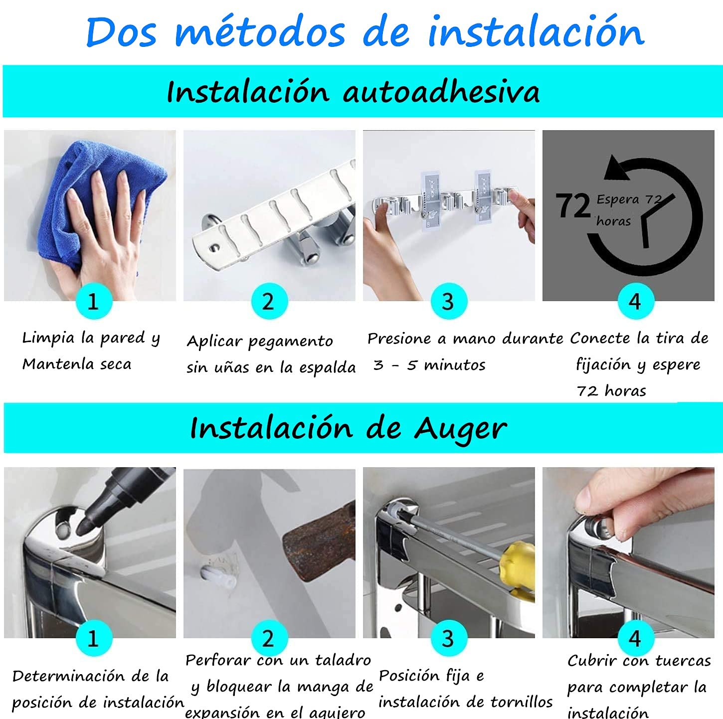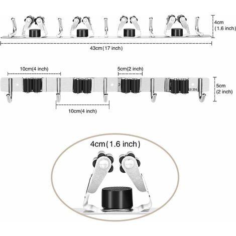 • Voarge Besen- Und Mopphalter Edelstahl - 3 Halterungen + 4 Haken, 38cm, Grau, Für Wandmontage