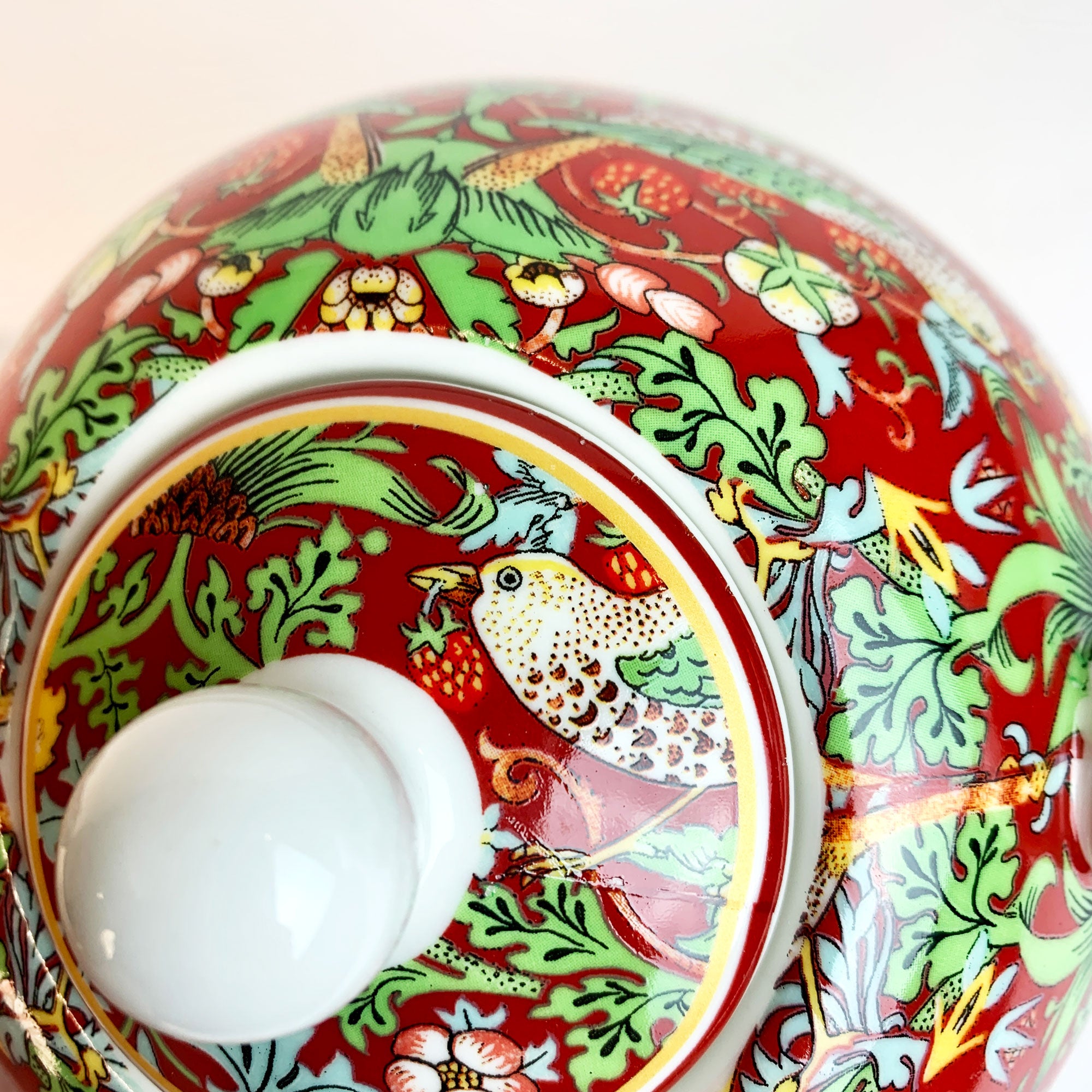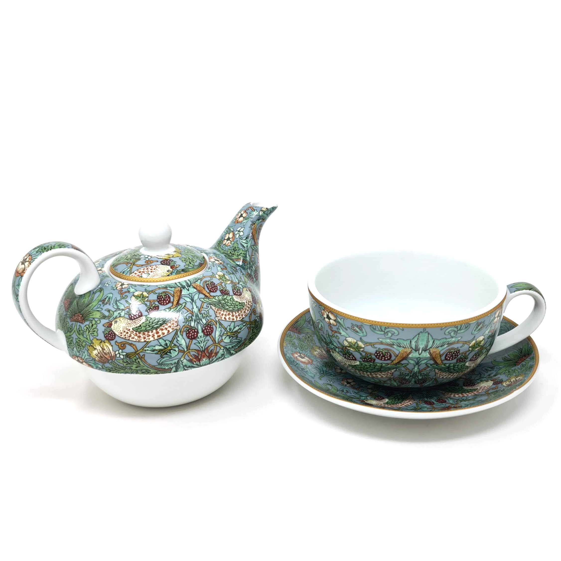 Genieße gemütliche Teestunden in stilvollem Ambiente! Dieses Tea for One Set mit William Morris 'Erdbeerdieb'-Design vereint Teekanne und Tasse in einem. Perfekt für eine Person - ob zu Hause oder im Büro.
