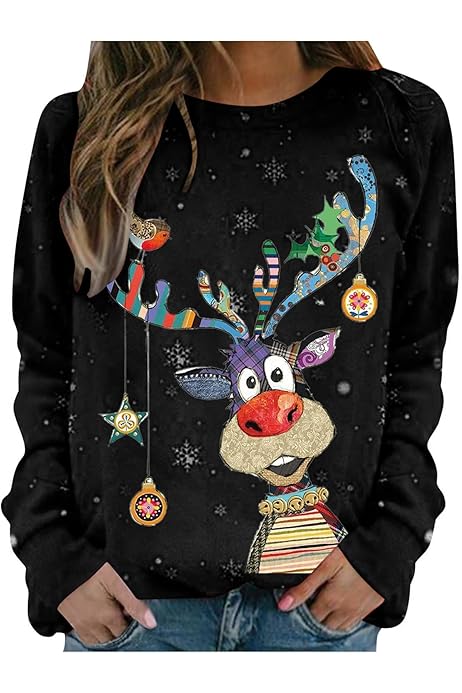 Oh, wie süß ist denn dieser Weihnachtspullover? Mit den drei frechen Weihnachtselfen in rot-weißen Outfits bringst du sofort Festtagsstimmung in die Bude! Der schwarze Sweatshirt-Stoff mit dem weißen 'Merry Christmas'-Schriftzug ist einfach perfekt für die Vorweihnachtszeit. Superbequem ist er auch noch - mit lockerer Passform und weichem Rundhalsausschnitt. Zieh ihn einfach über deine Jeans und schon bist du bereit für die Weihnachtsfeier, gemütliche Kinoabende oder den Besuch auf dem Weihnachtsmarkt. Die Elfen halten übrigens einen Kranz, ein Geschenk und eine funkelnde Dekoration fest - niedlicher geht's kaum! In M bis 3XL erhältlich, also für fast jede Größe was dabei. Macht auch als Geschenk richtig was her!