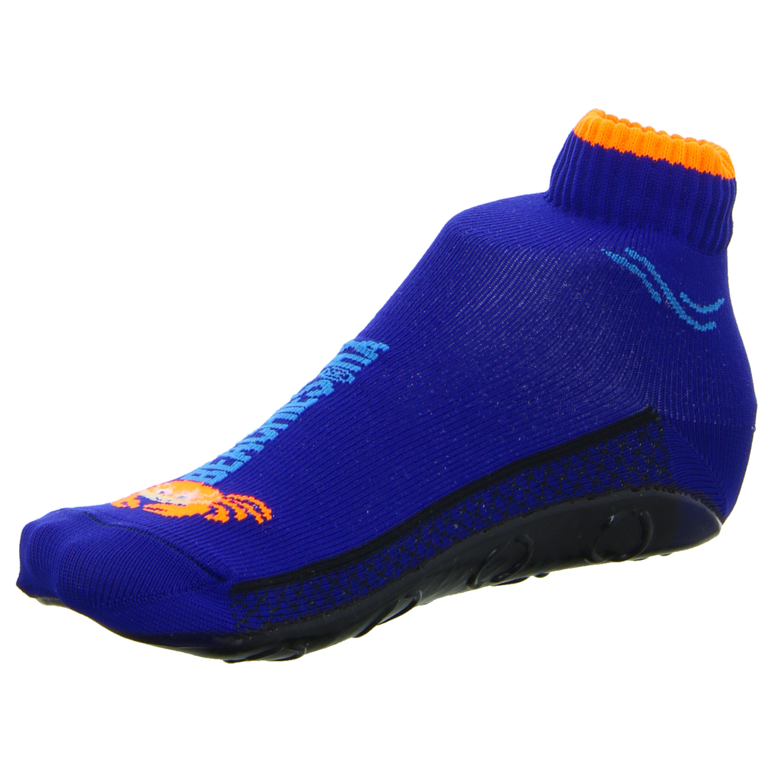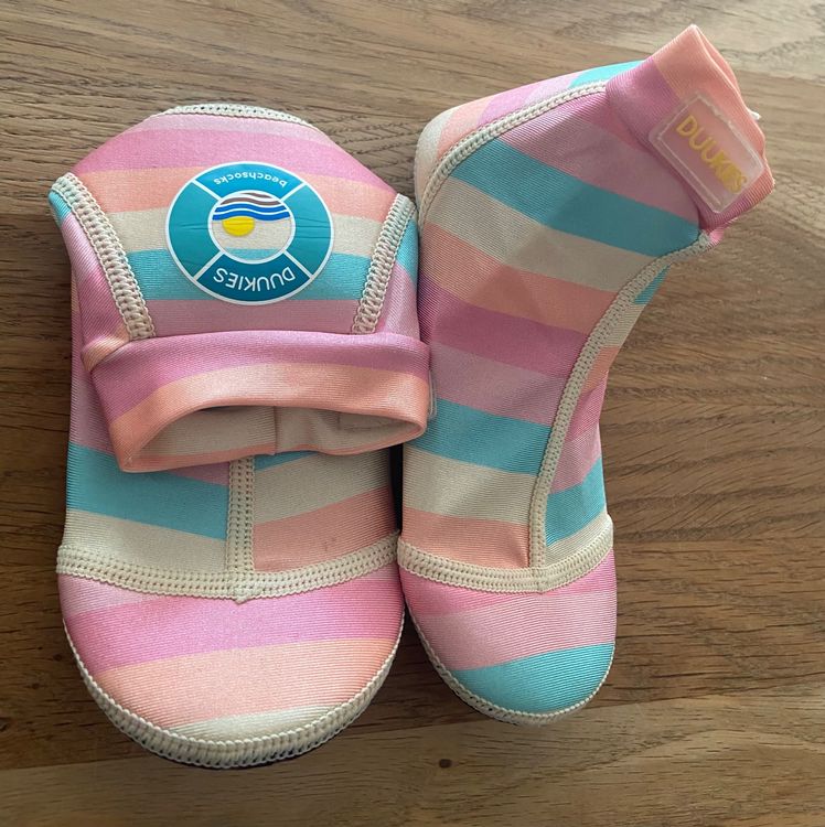 Endlich können die Kids sorgenfrei am Strand und im Schwimmbad toben! Diese super süßen Beachsocken von Duukies schützen kleine Füße vor scharfen Muscheln, heißen Steinen und der Sonne. Mit UV 50+ Schutz - da brennt sich nichts auf die Füßchen. Die rutschfeste Neoprensohle gibt sicheren Halt, auch auf nassen Fliesen. Und das Beste: Sie sind super leicht und fühlen sich an wie barfuß laufen! Das coole Sonnenbrillen-Motiv kommt bei Jungen und Mädchen gleichermaßen gut an. Einfach anziehen und los geht's - ob im Urlaub am Meer oder im heimischen Freibad. Die Doppelgrößen passen lange und wachsen quasi mit. Aus 88% Polyester und 12% Elastan - dehnen sich super mit und trocknen schnell. Perfekter Begleiter für den Sommer!