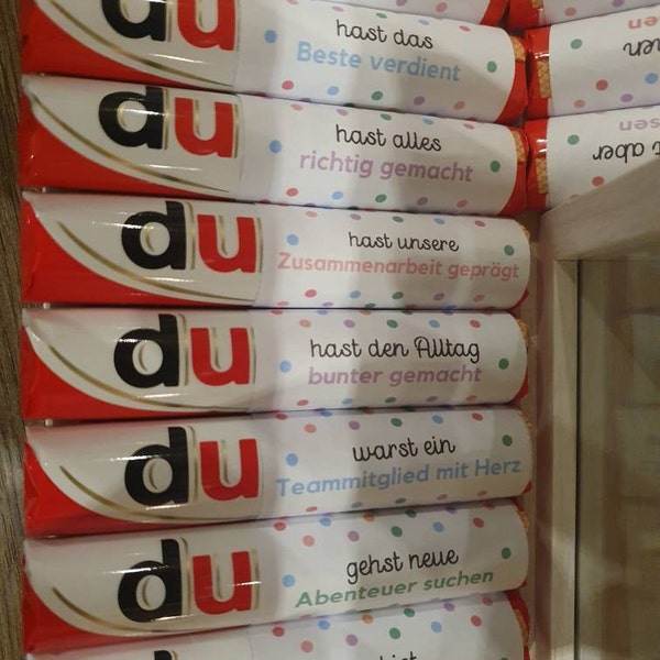 Wie cool ist denn dieses Aufkleber-Set für Team-Motivation! Perfekt für alle, die mal Danke sagen wollen oder ihre Kollegen überraschen möchten.\n\nIm Set sind 42 bunte Banderolen enthalten, die du um handelsübliche Duplo-Schokoladen wickeln kannst. Die Aufkleber haben verschiedene motivierende Sprüche und Botschaften - richtig schön designed und von Herzen kommend.\n\nEgal ob zur Weihnachtsfeier, zum Geburtstag, als kleines Dankeschön zwischendurch oder zur Motivation im stressigen Arbeitsalltag - damit machst du garantiert jedem eine Freude!\n\nDie Aufkleber sind selbstklebend und wirklich easy anzubringen. Einfach um die Duplo-Riegel wickeln, und schon hast du eine personalisierte Aufmerksamkeit, die in Erinnerung bleibt.\n\nWas ich besonders schön finde: Die Sets werden mit viel Liebe in Deutschland designt und von Hand zusammengestellt. Der Druck erfolgt in Europa - also richtige Qualität!\n\nWichtiger Hinweis: Die Schokolade ist nicht im Lieferumfang enthalten! Du bekommst nur die Aufkleber-Banderolen. Aber Duplo-Riegel gibt's ja in jedem Supermarkt.\n\nDas Set eignet sich super für Büros, Teams, Vorgesetzte oder einfach für nette Kollegen. Auch als Tischdekoration bei Meetings machen die bunten Schokoladen was her.\n\nAlso wenn du mal wieder Danke sagen willst oder dein Team motivieren möchtest - mit diesen Aufklebern liegst du garantiert richtig!