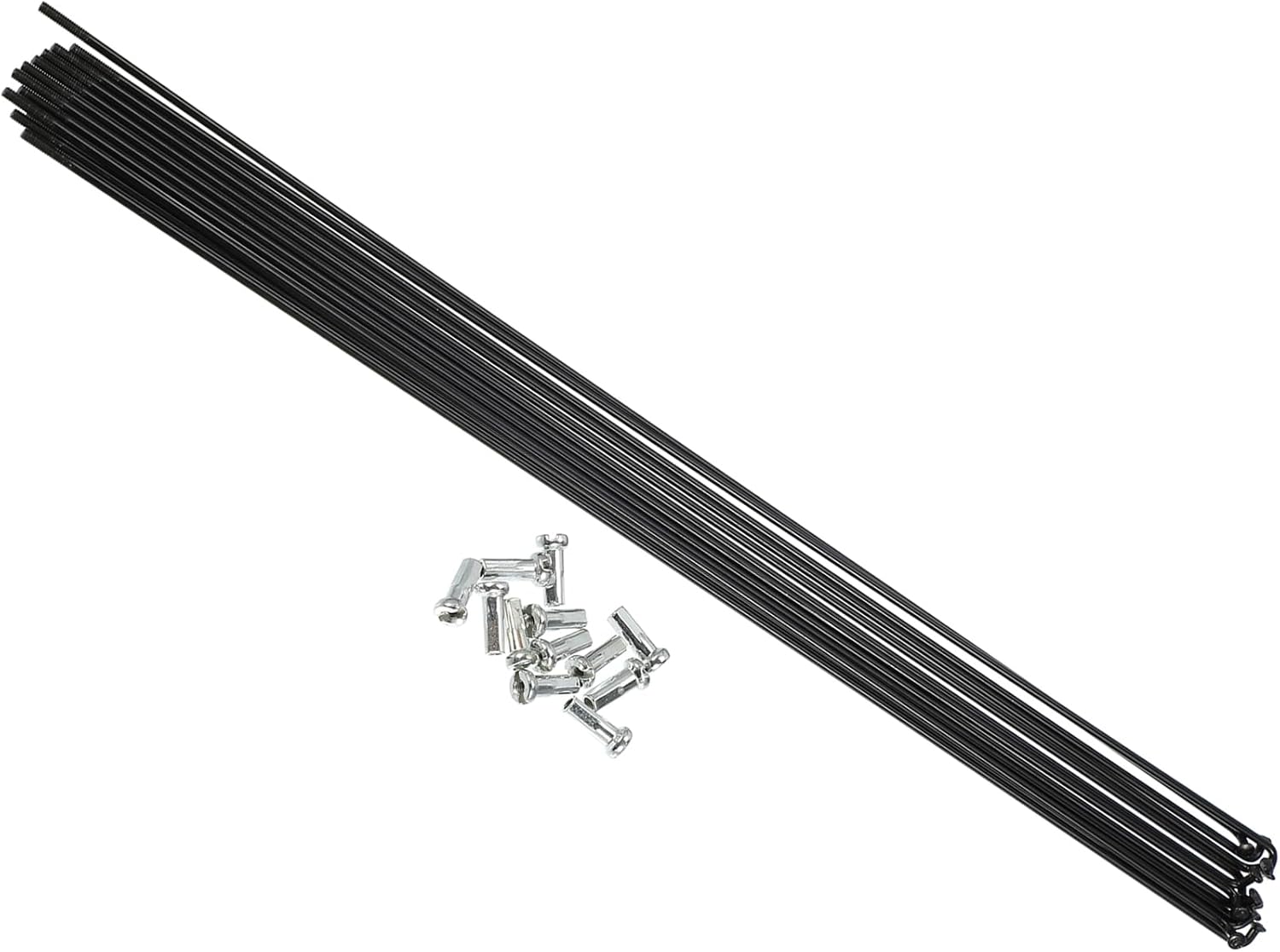 Komplettes Speichen-Set für deine Fahrradreparatur! Enthält 36 Stück schwarze Speichen in 245 mm Länge und passende Nippel. In robuster 14G Stärke (2 mm Schaftdurchmesser) aus zähem Kohlenstoffstahl gefertigt. Die fortschrittliche Hämmertechnologie erhöht die Schwingungsbelastbarkeit und macht die Speichen besonders langlebig. Perfekt für Standard-Fahrräder, Mountainbikes und Citybikes. Einfache Montage: Benachbarte Speichen im ersten und dritten Loch der Felge einsetzen. Wichtiger Tipp: Vor Bestellung alte Speichenlänge messen, da diese von Felge, Nabe und Flechtmethode abhängt. Mit diesem Set kannst du komplette Laufräder neu einspeichen oder beschädigte Speichen ersetzen. Verleiht deinem Rad nicht nur neue Stabilität, sondern auch ein frisches Aussehen. Alles dabei für eine professionelle Radreparatur!