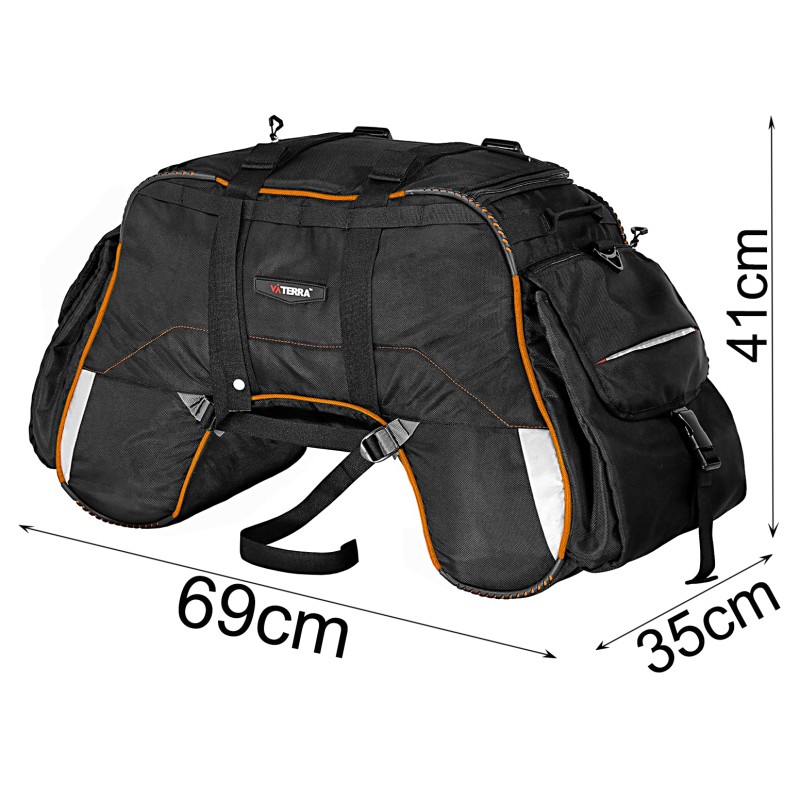Endlich genug Stauraum für deine Motorrad-Touren! Diese Hecktasche bietet volle 62 Liter Fassungsvermögen und passt auf praktisch jedes Motorrad. Besonders geeignet für Suzuki SV 650/S, aber auch universal einsetzbar - bitte vorher Maße checken: 69x41x35 cm. Aus robustem 1680D Nylon mit wasserdichter PU-Beschichtung. Bei leichtem Regen schon dicht, mit der Regenhülle hält sie auch Dauerregen stand. Mit integrierten Spanngurten, Reflektoren für mehr Sicherheit und praktischen Extrataschen. Die Ecken sind kunststoffverstärkt für beste Stabilität. Inklusive Schultergurt - so nimmst du dein Gepäck einfach mit. Perfekt für die nächste Tour!