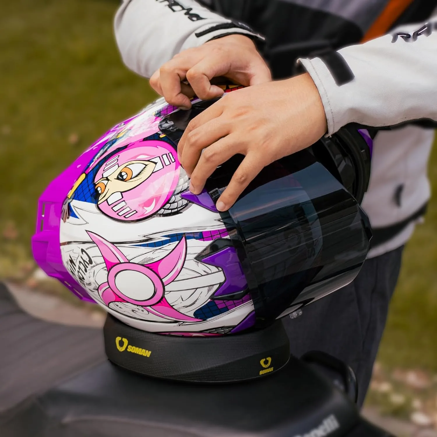 Motorradfahrer, hier kommt die Lösung für eure Helm-Probleme! Dieser Helmständer in Donut-Form hält euren Helm sicher und sauber! Das Service Pad absorbiert Feuchtigkeit und hält euren Helm frisch und trocken!