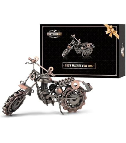 Wow, dieses Motorrad-Modell ist absolut faszinierend! Im Retro-Vintage-Stil mit Steampunk-Elementen - ein echter Hingucker! Handgefertigt aus hochwertigem Metall, jedes Detail liebevoll ausgearbeitet! Die Räder können rollen und der Lenker lässt sich drehen - fast wie ein echtes Motorrad! Perfekt fürs Wohnzimmer, Bücherregal, Schreibtisch oder als besonderes Deko-Element! Mit 21x8x14cm Größe und 550g Gewicht hat es eine schöne Präsenz! Einzigartiges Geschenk für Motorrad-Fans, Sammler oder einfach für dich selbst! Sieht aus wie aus einer anderen Zeit - voller Charakter und Charme! Mach deine Einrichtung noch persönlicher mit diesem kunstvollen Stück! Ob als Weihnachtsgeschenk, Geburtstagsüberraschung oder einfach so - damit machst du garantiert Freude! Hol dir ein Stück Kunst für dein Zuhause - dieses Modell wird zum Gesprächsstoff!
