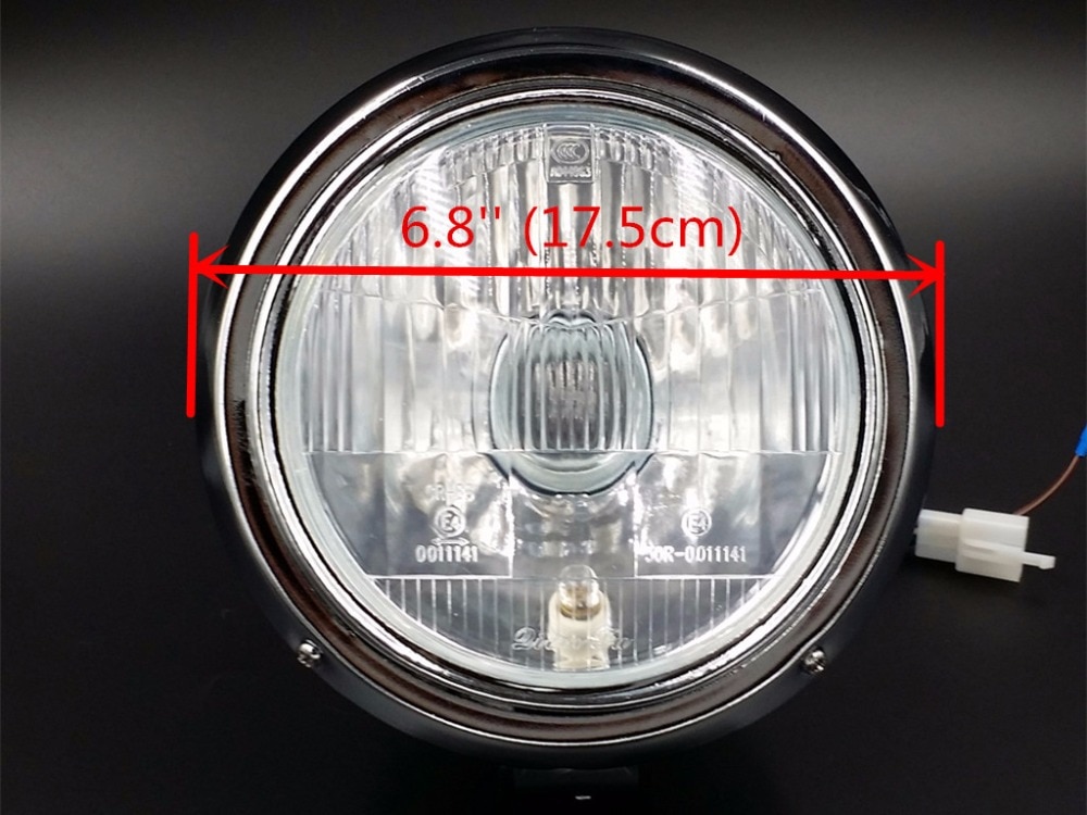 Bring dein Bike auf Vordermann! Dieser chromfarbene Rundscheinwerfer verleiht deiner Honda Rebel, CMX250, CA250, Magna oder Steed einen frischen Look. Mit 12V und wasserdichtem Kunststoffgehäuse plus Glaslinse sorgt er für zuverlässige Beleuchtung bei jeder Fahrt. Die Montage ist super einfach - die Schraubenlöcher haben 7mm Durchmesser mit 3,5cm Mittelabstand. Der Scheinwerfer bietet sowohl Fern- als auch Abblendlicht für optimale Sicht bei Nachtfahrten. Maße: 14,5cm lang, 14,5cm breit, 13,5cm hoch mit 20cm Kabel. Ein echter Hingucker der nicht nur gut aussieht, sondern auch sicher durch die Nacht bringt. Bitte vorher Kompatibilität mit deinem Modell prüfen!