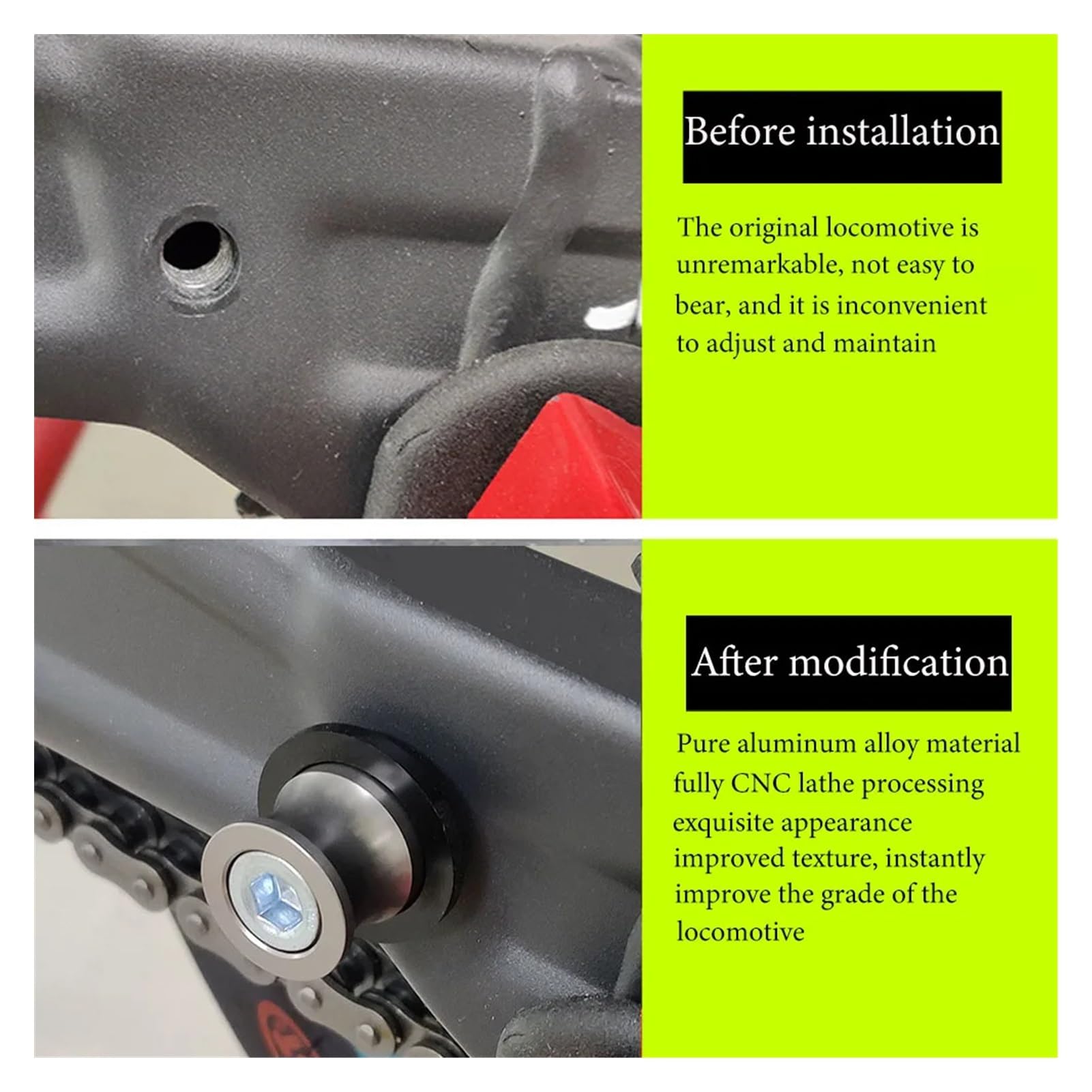 Perfekt um deine Motorrad-Schwinge vor Beschädigungen bei Stürzen oder beim Abstellen zu schützen. Die Slider reduzieren nicht nur Schäden, sondern sehen auch noch richtig sportlich aus!