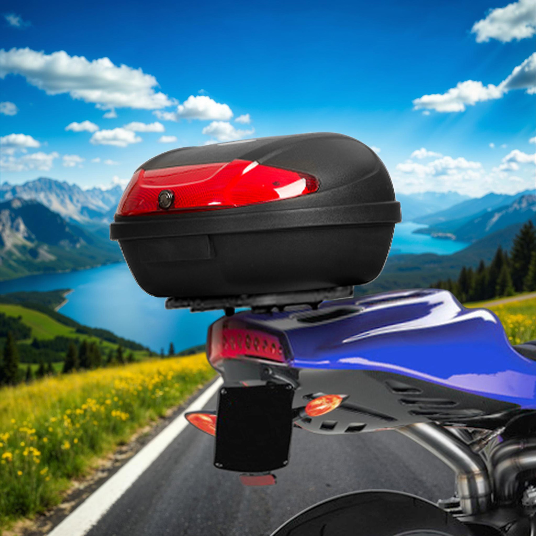 Brauchst du mehr Stauraum für dein Motorrad oder Roller? Dieser Topcase ist die Lösung! 33 Liter Volumen, da passen easy zwei Helme rein. Aus robustem ABS Material, richtig wasser- und staubdicht. Also keine Sorge bei Regen! Maße: 33x33x24cm, in Weiß, Rot, Silber, Schwarz, Rosa oder Blau erhältlich. Mit Diebstahlsicherung durch Aluminium-Kern und Warnreflektor für mehr Sicherheit. Wichtig: Du brauchst einen Gepäckträger für die Montage! Einfach den Montagesockel befestigen, Koffer draufklipsen und fertig. Perfekt für Helm, Jacke, Einkäufe oder was du sonst so transportieren willst. Mach deine Maschine noch praktischer!