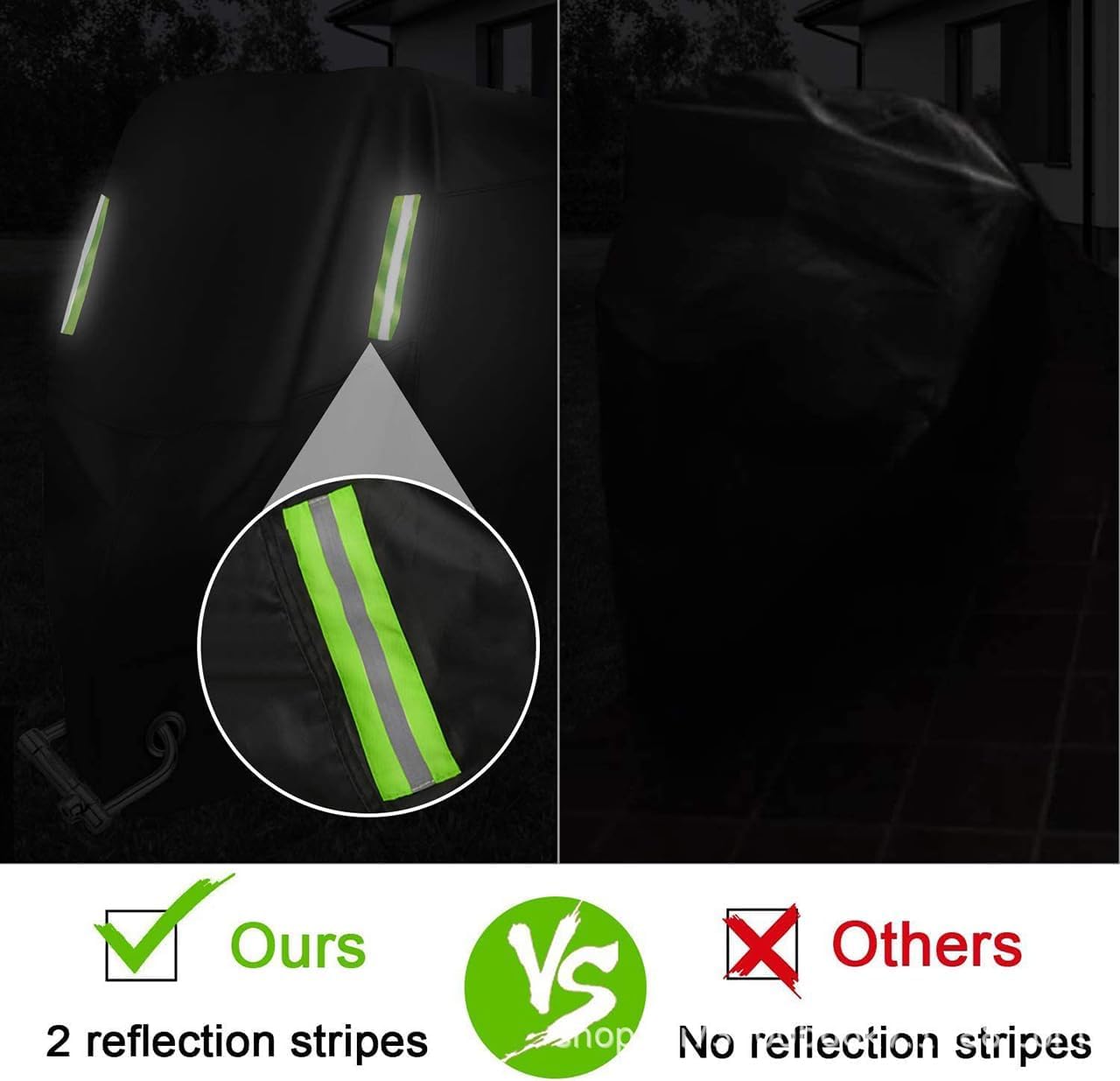 Reflektierende Streifen sorgen für bessere Sichtbarkeit bei Nacht. Das diebstahlsichere Schlossloch ermöglicht zusätzlichen Schutz. Leicht zu reinigen und platzsparend zusammengefaltet - perfekt für unterwegs.
