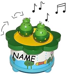 Diese süße Frosch-Spieluhr von Mousehouse bezaubert jedes Kinderherz! Aus hochwertigem Holz gefertigt, spielt sie die Melodie 'Pop Goes The Weasel' wenn du den oberen Deckel drehst. Drei kleine Frösche mit beweglichen Kordel-Arme und Beine tanzen dabei fröhlich mit. Mit den Maßen 11x11x11 cm ist sie perfekt für kleine Kinderhände geeignet. Ob als Einschlafhilfe, zum Trösten oder einfach nur zum Spielen - diese Spieluhr wird zum treuen Begleiter deines Kindes. Ein wunderbares Geschenk zur Geburt, Taufe, Geburtstag oder einfach so! Das limitierte Design ist exklusiv bei Mousehouse erhältlich und wird dein Kind lange begleiten. Die liebevolle Verarbeitung und die sanfte Musik schaffen eine gemütliche Atmosphäre im Kinderzimmer. Ein zeitloses Spielzeug, das Generationen überdauert und immer wieder Freude macht. Einfach mal aufziehen und in die bezaubernde Welt der tanzenden Frösche eintauchen!