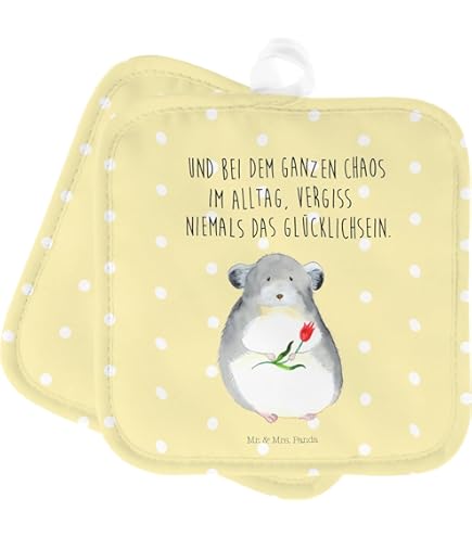Bring mehr Spaß in deine Küche mit den Mr. & Mrs. Panda Topflappen! Dieses 2er-Set im niedlichen Stinktier-Design ist nicht nur praktisch, sondern auch ein echter Hingucker. Jedes Stück misst 17x17 cm und ist 5 mm stark gepolstert - ideal zum Anpacken heißer Töpfe oder als Untersetzer. Aus 100% Polyester, bei 30°C waschbar. Mit Aufhänger für griffbereite Ordnung. Die handgezeichneten Aquarell-Motive und lustigen Sprüche sorgen für gute Laune beim Kochen. Ein tolles Geschenk für alle, die es fröhlich und individuell mögen. Auch als Ofenhandschuh geeignet. Mach deine Küche zum Lieblingsort - mit Mr. & Mrs. Panda!
