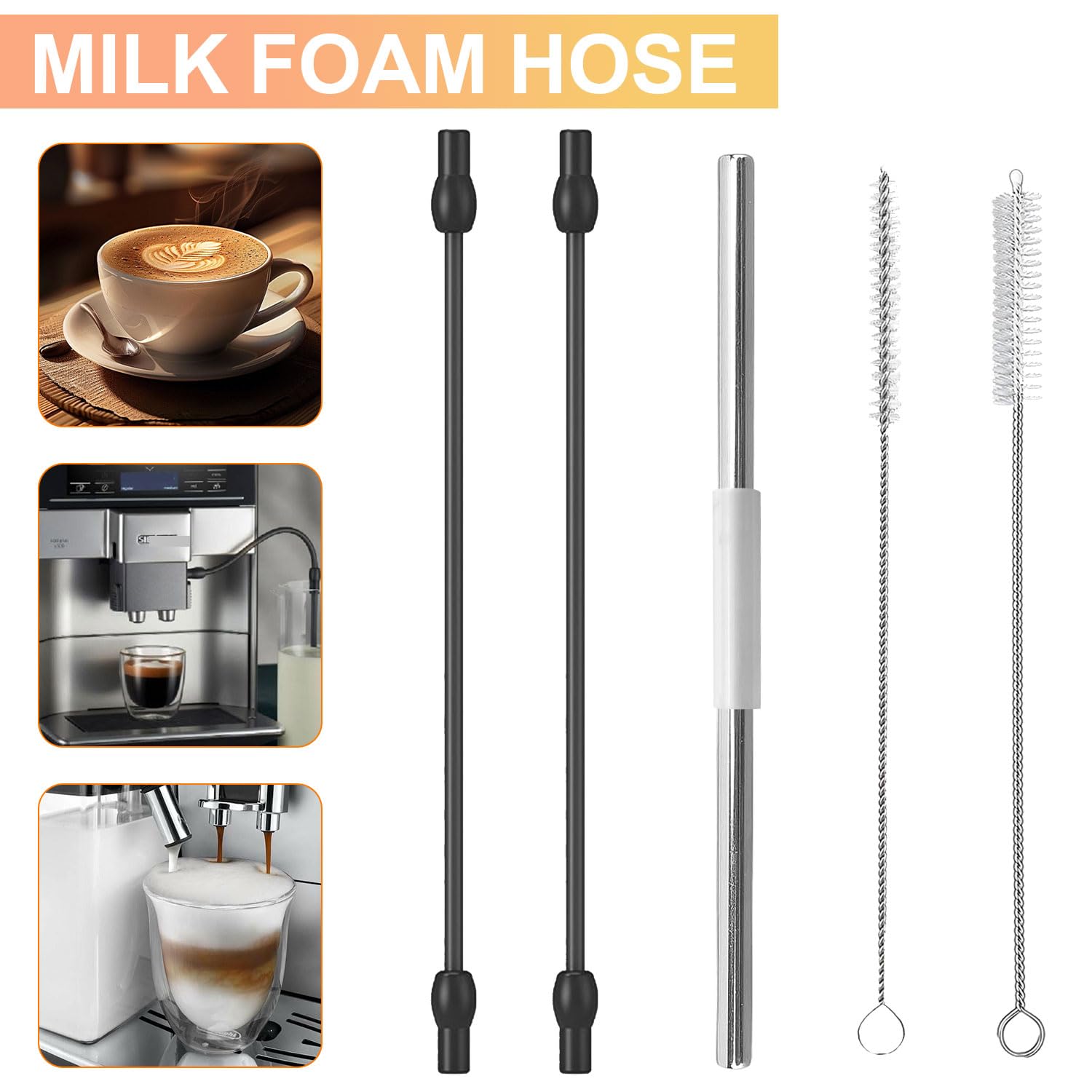 Perfekte Milch für deinen Kaffeevollautomaten! Dieses Mritrit Milchschlauch-Set besteht aus einem hochwertigen 304 Edelstahlrohr und flexiblem Silikonschlauch - die ideale Kombination für langlebige Performance. Kompatibel mit EQ6, EQ7 Plus, S300, S500, S700 und anderen 300/500/700er Kaffeevollautomaten. Das Edelstahlrohr ist spülmaschinenfest und umweltfreundlicher als Plastik-Varianten, während der Silikonschlauch weich, flexibel und reißfest ist. Im Set enthalten ist eine spezielle Reinigungsbürste für die mühelose Säuberung nach jeder Benutzung. Wichtiger Hinweis: Berühre den Edelstahlschlauch während der Milchreinigungsfunktion nicht! Diese Kombination reduziert den Austauschaufwand und garantiert langfristig hygienische Milchaufschäumung. Einfach installieren und von professioneller Milchqualität profitieren - ob für Latte Macchiato, Cappuccino oder heiße Schokolade!
