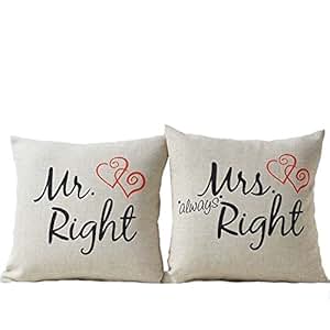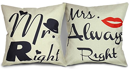 Suchst du ein süßes und romantisches Geschenk für deinen Partner? Diese Mr Right & Mrs Always Right Kissenbezüge sind perfekt! Im Paar geliefert, zeigen sie die humorvolle aber liebevolle Dynamik in jeder Beziehung. Aus 100% Baumwolle mit 200 Fadenzahl fühlen sie sich weich und angenehm auf der Haut an. In schwarzer Farbe mit weißer Aufschrift sind sie dezent aber dennoch aussagekräftig. Perfekt als Geschenk für Valentinstag, Hochzeitstage, Jahrestage oder Weihnachten. Einfach über deine vorhandenen Kissen ziehen und schon verleihen sie eurem Schlafzimmer oder Wohnzimmer eine persönliche Note. Eine lustige und liebevolle Art zu zeigen, wie sehr ihr euch liebt - auch wenn nicht immer einer Recht hat (oder doch?). Ein Geschenk, das garantiert ein Lächeln ins Gesicht zaubert!