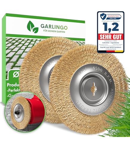 Dieses 4er-Set Fugenbürsten ist ein Game-Changer für deine Gartenarbeit! Aus starkem messingbeschichtetem Stahldraht, perfekt zum Entfernen von Unkraut und Moos aus Fugen. Passt ideal zu Gloria Multibrush und ähnlichen Maschinen. Durchmesser: 110 mm, Innendurchmesser: 16 mm. Schont Oberflächen und macht auch vor hartnäckigem Dreck nicht halt. Tipp: Trag am besten Handschuhe und Schutzbrille bei der Arbeit. Damit sehen deine Wege und Plätze wieder aus wie neu!