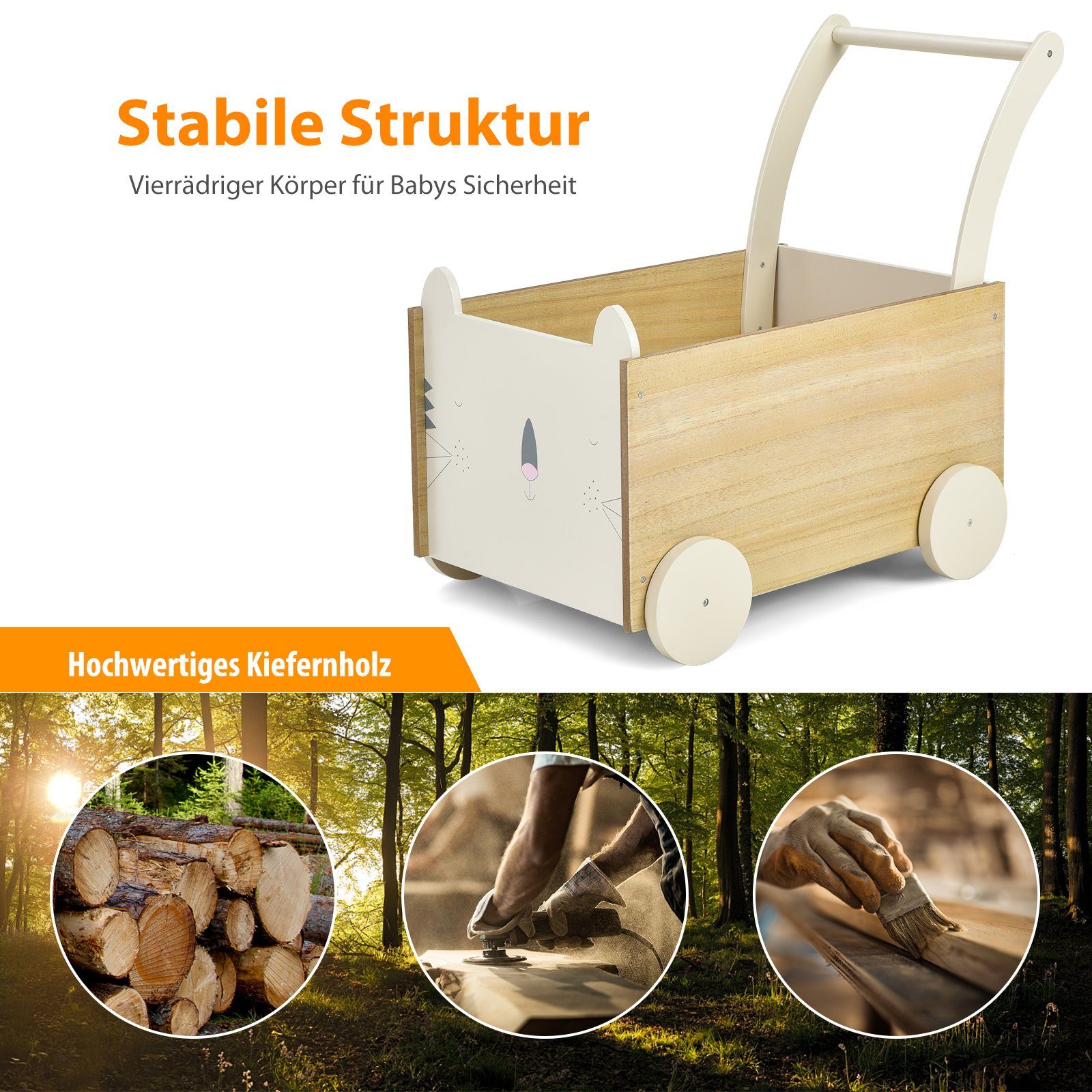 Dein Kind macht die ersten Schritte? Dieser vielseitige Lauflernwagen von COSTWAY ist der perfekte Begleiter! Maße: 59x44x53cm (LxBxH) - ideal für Kleinkinder. Aus stabilem HDPE-Material - robust und pflegeleicht. Multifunktional: zum Schieben, Reiten, Ziehen und als Spielzeugkiste. Mit 70cm langem Zugseil für elterliche Führung. Verstecktes Staufach unter klappbarem Sitz - perfekt für Spielzeug. Hohe Sicherheitsgeländer und abgerundete Ecken für maximale Sicherheit. Leichtgängige Räder für müheloses Bewegen. Tragfähigkeit des Sitzes: 35kg. Für Kinder von 18-36 Monaten. Fördert Gleichgewicht, Motorik und Selbstvertrauen. In beige, khaki, weiß und grau erhältlich. Ein pädagogisch wertvolles Spielzeug, das Spaß und Lernen verbindet. Das ideale Geschenk für kleine Entdecker!