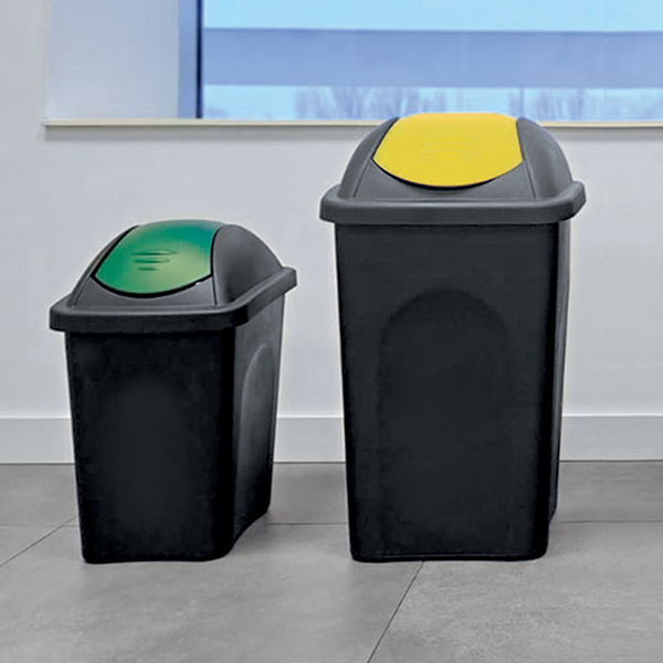 Stefanplast Multipat Mülleimer 30L - Schwarz/Grün Mit Schwingdeckel