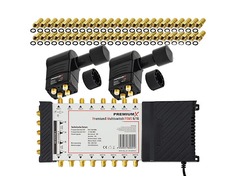 Dieses Premium X Set ist die Komplettlösung für SAT-Empfang in Mehrfamilienhäusern! Der Multischalter verteilt Signale von einem Satelliten auf bis zu 32 Teilnehmer - ob Astra, Hotbird oder andere Satelliten. Im Set: 1x PXMS 5-32 Multischalter, 1x Rocket Quattro LNB und 72x F-Stecker. Das Besondere: Eingebautes Netzteil, Erdungsklemme und Terreingang für UKW/DVB-T. Frequenzbereich SAT: 950-2200 MHz, für Terr: 47-862 MHz. Der LNB hat nur 0,1dB Rauschmaß und ist perfekt für Multifeed mit 3° Abstand. Ideal für 8K, 4K UltraHD und alle gängigen Formate. Einfach installieren und alle Bewohner können unabhängig voneinander das volle Programm nutzen. Damit wird SAT-Empfang im ganzen Haus zum Kinderspiel!