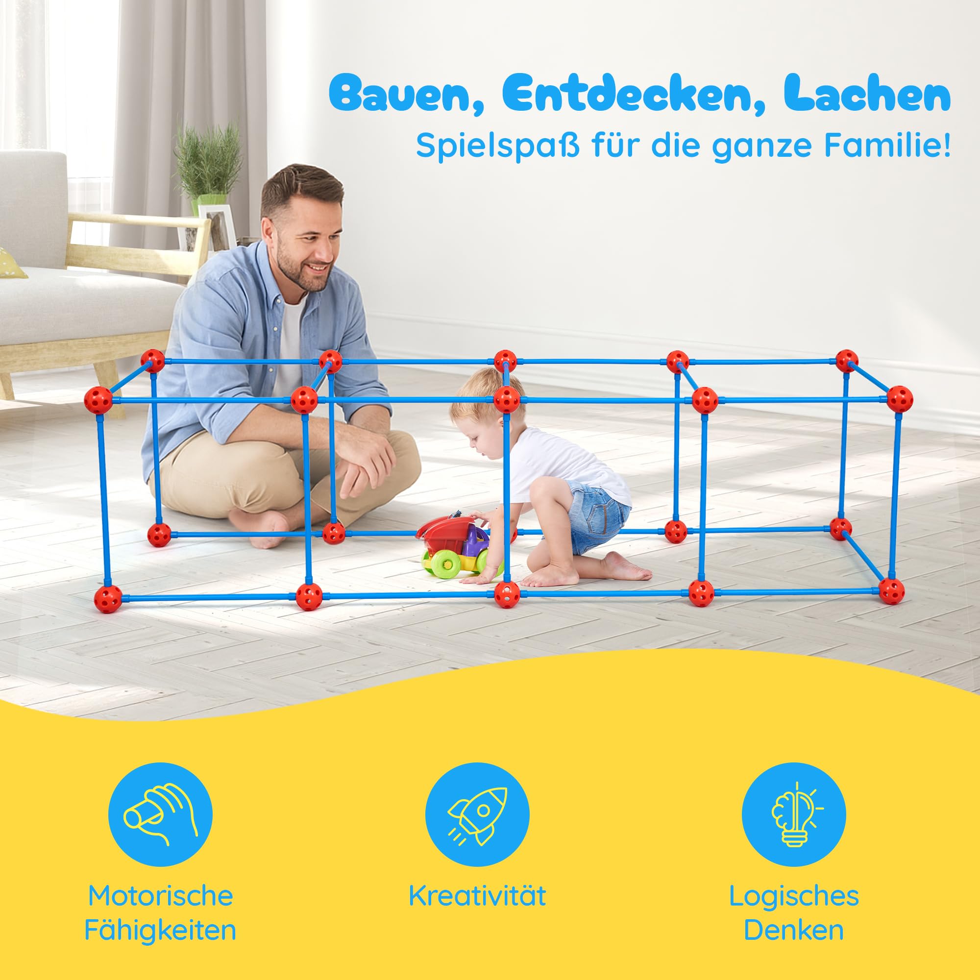 Hey Eltern, dieses mundo plays Konstruktionsspielzeug ist der absolute Hit für kreative Kids! Mit 100 Teilen können deine Kinder ihre eigenen Spielwelten bauen - ob drinnen im Kinderzimmer oder draußen im Garten. Burgen, Raumschiffe, Höhlen oder Zelte - der Fantasie sind keine Grenzen gesetzt! Die stabilen Verbindungselemente halten bombenfest, selbst bei wildem Spiel. So förderst du spielerisch MINT-Fähigkeiten (Mathematik, Informatik, Naturwissenschaften, Technik) ohne dass dein Kind es merkt! Räumliches Denken, Kreativität und Problemlösen werden ganz nebenbei trainiert. Perfekt für Kinder ab 4 Jahren - ob alleine, mit Geschwistern oder Freunden. Viele Eltern berichten begeistert, wie ihre Kinder stundenlang bauen und tüfteln. Deutlich stabiler als viele Konkurrenzprodukte - das hält auch mal was aus! Achtung: Nicht geeignet für Kinder unter 3 Jahren wegen verschluckbarer Kleinteile! Schluss mit Langeweile und Bildschirmzeit - mit diesem Bauset entstehen Momente voller Fantasie und Freude. Ein Spielzeug das mitwächst und immer neue Herausforderungen bietet - einfach genial!