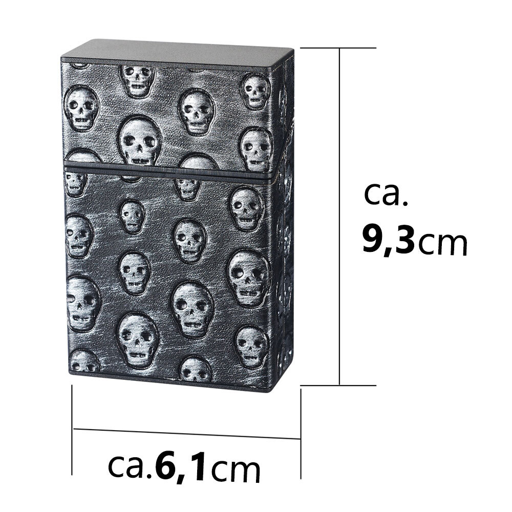 Wow, dieses Murago Zigarettenetui ist echt der Hammer! Nicht nur, dass es deine 20 Zigaretten sicher verstaut - es hat auch noch einen integrierten Flaschenöffner. Perfekt für den Abend mit Freunden! Das Schädel-Motiv mit den Blumen im Boho-Style sieht einfach mega aus und macht was her. Aus Metall und Kunstleder gefertigt, fühlt es sich richtig wertig an und hält auch mal was aus. Mit den Maßen 9,7x9,3x1,7 cm passt es super in jede Jackentasche oder Handtasche. Das matte Finish ist nicht nur stylisch, sondern zeigt auch weniger Fingerabdrücke. Praktischer geht's kaum: Zigaretten griffbereit und wenn's mal ein Bier zu öffnen gibt, musst du nicht lange suchen. Sieht viel edler aus als diese billigen Plastiketuis und ist ein richtiger Hingucker in Schwarz. Ob im Club, auf dem Festival oder einfach unterwegs - mit diesem Etui bist du immer bestens ausgestattet und hast deine Zigaretten immer geschützt dabei. Einfach ein cooles Accessoire für alle Raucher, die auch auf Style Wert legen!