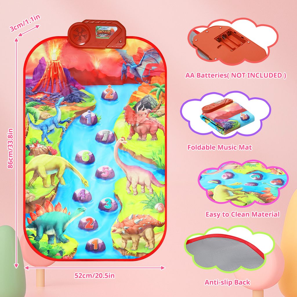Musik macht jetzt noch mehr Spaß! Diese bunte Klaviermatte lädt zum Tanzen und Musizieren ein. Mit 8 Instrumenten-Klängen, 10 Melodien und blinkenden Lichtern. Die 100x36cm große Matte ist berührungsempfindlich und fördert die Koordination von Händen und Füßen. Aus weichem, rutschfestem Material - sicher für die Kleinen. Zusammenklappbar für platzsparende Aufbewahrung. Perfekt als Geschenk für Kinder von 1-5 Jahren!