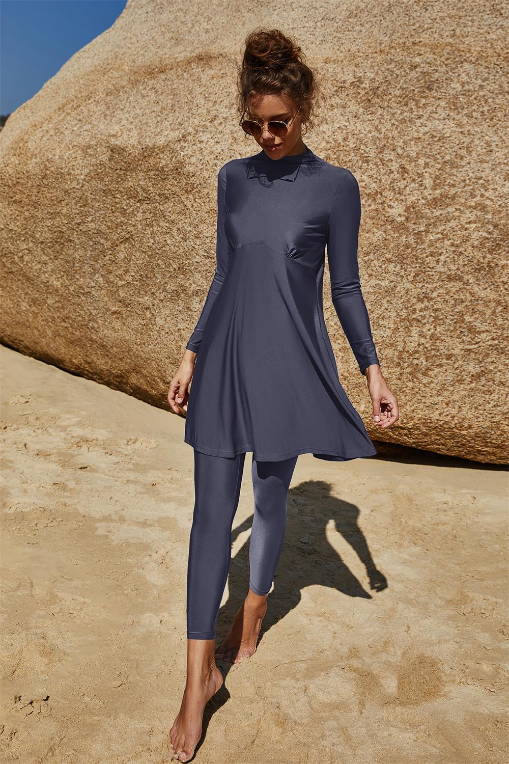 Endlich unbeschwert schwimmen gehen! Dieses 2-teilige Burkini-Set besteht aus 82% Polyester und 18% Elasthan - super elastisch und schnell trocknend. Die bescheidene Badebekleidung bietet vollen UV-Schutz und ist damit ideal für muslimische Frauen oder alle, die mehr Bedeckung preferieren. Perfekt für Schwimmen, Tauchen, Beachvolleyball und andere Wassersportarten. Wichtig: Bitte die mitgelieferte Größentabelle beachten, nicht die Standard-Amazon-Tabelle! In Größen von S/M bis 2XL erhältlich. Weich auf der Haut, atmungsaktiv und farbecht - so macht Baden richtig Spaß!