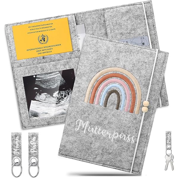 Alles sicher verstaut für die aufregende Zeit der Schwangerschaft! Diese praktische Mutterpasshülle aus weichem Filz schützt deine wichtigen Schwangerschaftsdokumente vor Knittern, Flecken und Beschädigungen. Perfekt zugeschnitten auf den deutschen Standard-Mutterpass (bis A5-Format) - alles hat seinen Platz! Die Hülle bietet mehrere Fächer: Eine große Haupttasche für den Mutterpass, eine transparente Innentasche für Ultraschallbilder und seitliche Netzfächer für weitere Dokumente. Das dehnbare Gummiband gibt bis zu 5 cm nach - ideal also, wenn im Laufe der Schwangerschaft immer mehr Unterlagen dazu kommen. Aus robustem Chemiefaserfilz gefertigt, ist die Hülle besonders langlebig und hat eine schöne, dreidimensionale Textur. Das neutrale Design in Dunkelgrau passt zu jeder Einrichtung und ist geeignet für Jungen, Mädchen oder sogar Zwillinge! Zur einfachen Reinigung einfach mit einem trockenen Tuch abwischen - Kontakt mit Flüssigkeiten besser vermeiden. Im Lieferumfang ist die Hülle in den Maßen 28×20 cm plus zwei süße Schlüsselanhänger aus Filz. Mach dir und deinem Baby die beste Zeit - mit allen wichtigen Dokumenten immer sicher und griffbereit!