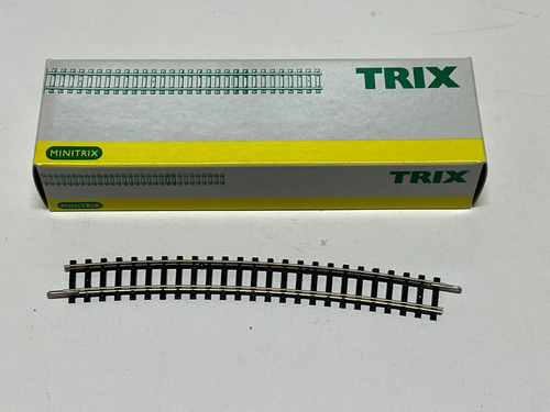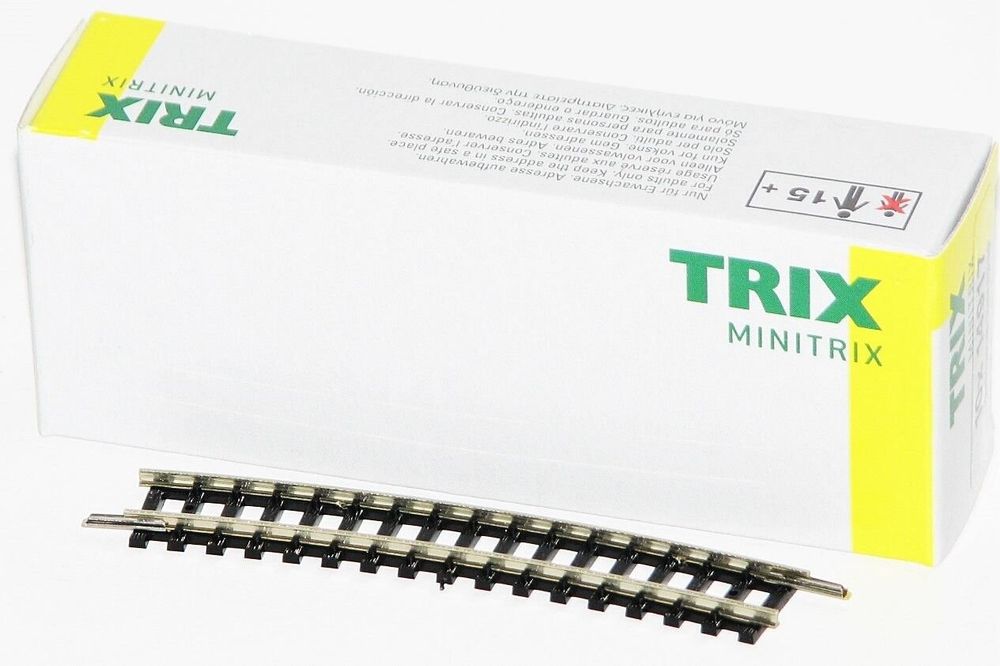 Alles klar, Modelleisenbahn-Fans! Dieses Trix 14918 N gebogene Gleis-Set ist genau das Richtige für deine Anlage. Mit Radius 5 (492,6 mm) und 15 Grad Neigung - perfekt für realistische Kurven. Im Set sind 10 Gleise enthalten, für einen kompletten Kreis brauchst du 24 Stück. Wichtig: Das ist was für Sammler, nicht für Kinder unter 15 Jahren! Und die Verpackung besser aufbewahren. Für Spur Minitrix geeignet - also check vorher ob's zu deinem System passt. Super Qualität wie immer von Trix, die wissen ja was sie tun. Egal ob du deine bestehende Anlage erweiterst oder was komplett Neues baust - mit diesen Gleisen machst du nichts falsch. Einfach einstecken und losfahren! Die Gleise sind präzise verarbeitet und sorgen für einen super Lauf deiner Züge. Ein Must-Have für jeden ernsthaften Modelleisenbahn-Bastler!