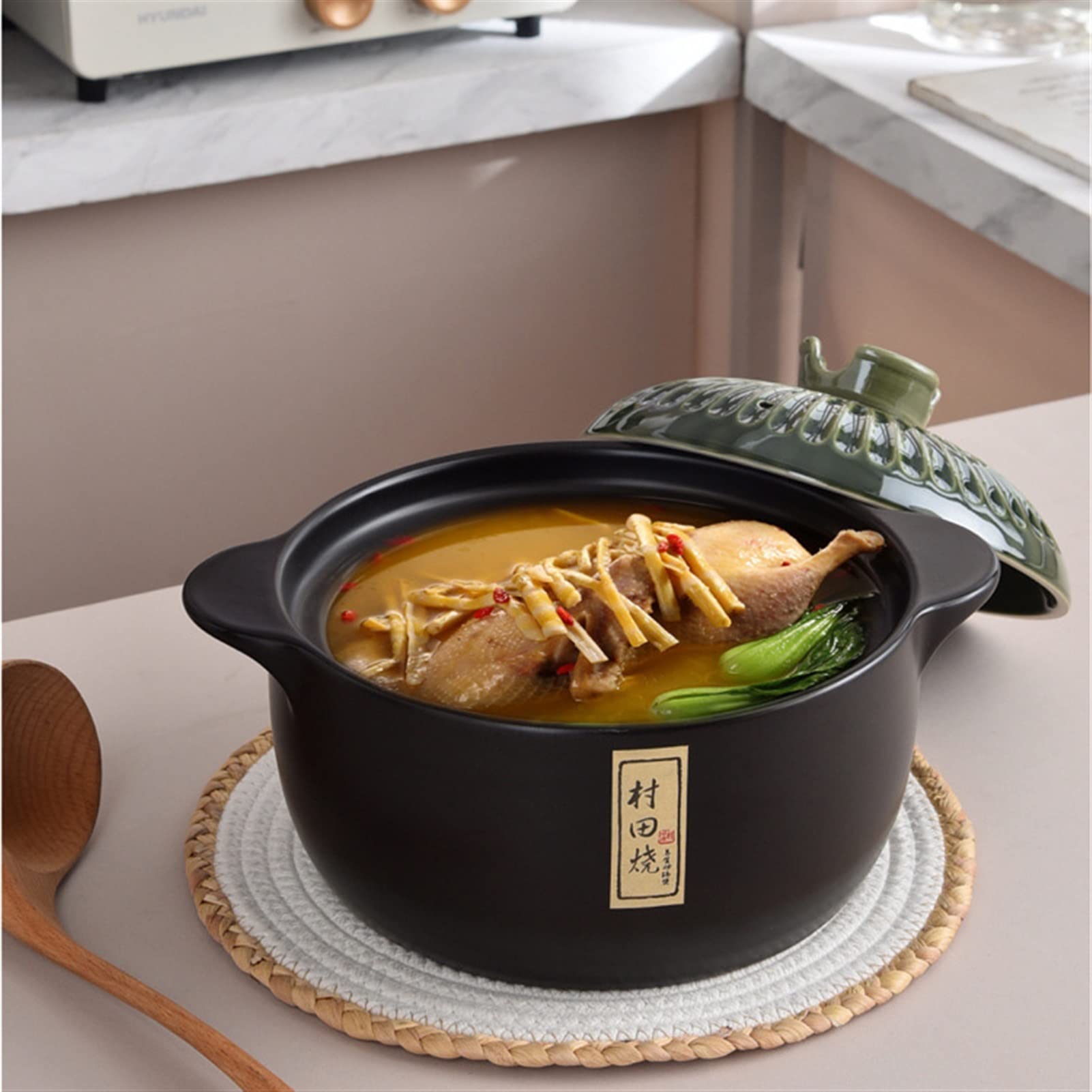 Hey Kochbegeisterte! Dieser japanische Donabe-Tontopf bringt authentisches Asien-Feeling in deine Küche. Mit 600ml Fassungsvermögen und den Maßen 23x17x10cm ist er perfekt für einzelne Portionen - ob Ramen, Suppen oder Eintöpfe. Das natürliche Tonmaterial sorgt für eine super gleichmäßige Wärmeverteilung, sodass alles perfekt gelingt. Und das Beste: Es ist total gesund, weil ohne schädliche Chemie! Der Topf ist super vielseitig - du kannst damit kochen, köcheln oder anbraten. Wegen seiner kompakten Größe nimmt er kaum Platz weg und ist ideal für kleine Küchen. Das schwarze Design sieht dabei richtig stylisch aus. Ob fürs gemütliche Abendessen daheim oder zum Mitnehmen - dieser Tontopf ist dein neuer Küchenliebling. Einfach mal was anderes als die langweiligen Edelstahltöpfe!