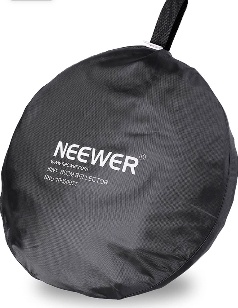 Perfekt für bessere Fotos! Dieser 5-in-1 Reflektor von NEEWER ist ein echter Game-Changer. Mit 80 cm Durchmesser und 5 Oberflächen: transluzent (Diffusor), Silber, Gold, Weiß und Schwarz. So kannst du das Licht genau steuern, wie du es brauchst. Super praktisch: Er lässt sich klein zusammenfalten und passt in die mitgelieferte Tasche - ideal für unterwegs! Mit zwei Griffen und 3/8\ Gewinde für Stativbefestigung. Die Metallklammer ist 180° und 360° verstellbar für perfekte Positionierung. Aus robustem Polyester und legiertem Stahl - reißfest und langlebig. Ob im Studio oder Outdoor - damit werden deine Fotos sofort professioneller! Einfach entfalten, in den gewünschten Modus bringen und besseres Licht genießen!